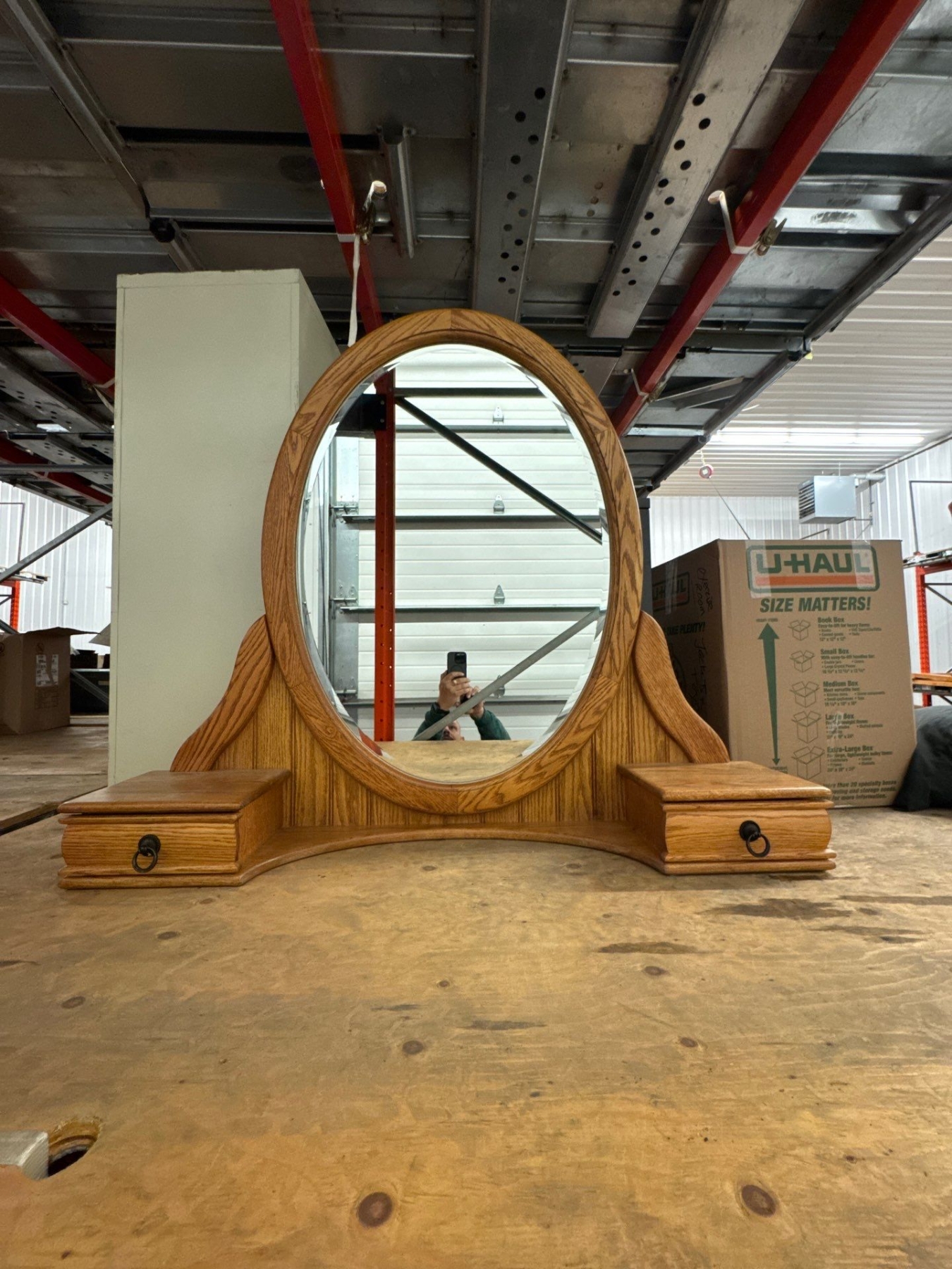 Mirror is 43 inches high. By 48 inches long.Dresser. 66 inches long by 17 inches wide by 38 inches high. Includes mirror attachment.