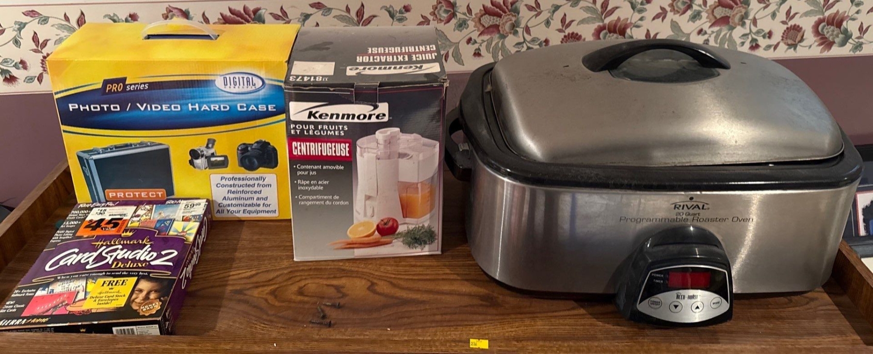 Misc. Home Collection - Kenmore Juice Extractor, Video Hard Case, Cards, Rival Roaster Oven and More