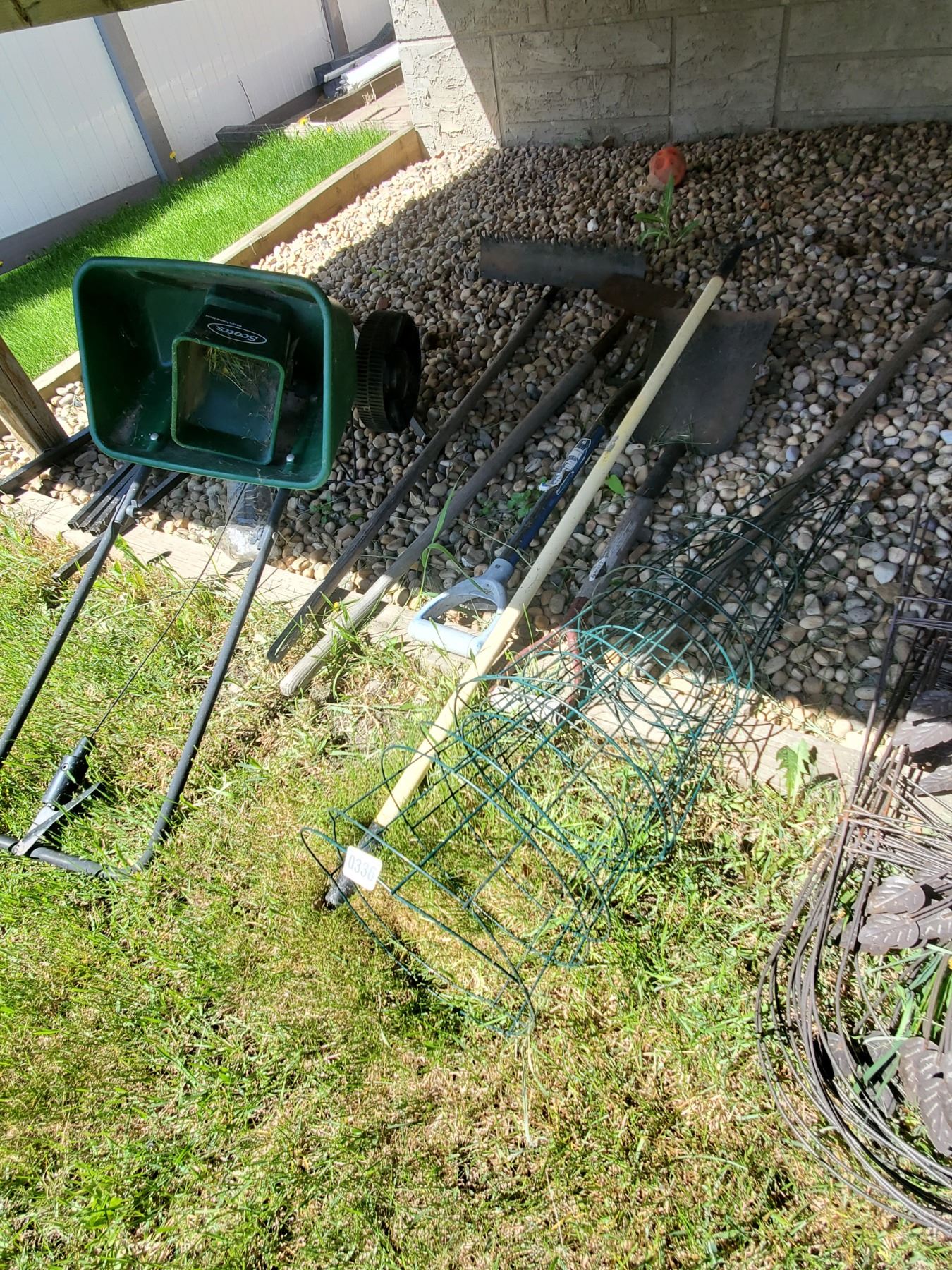 Miscellaneous Lot of Lawn Tools, Garden Fence, Seed/Fertilizer Dispencer & More