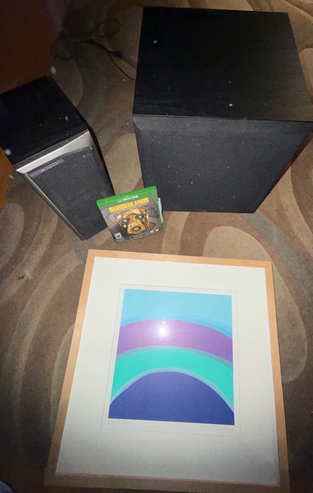 Mission M2Sas Sub Woofer & Speaker W/ Framed Homemade Picture & XBOX Game "Borderlands"