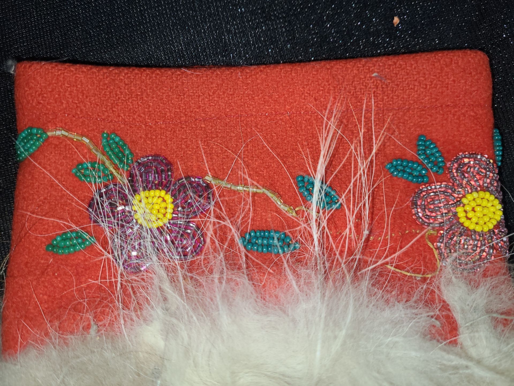 Moccasins w/ Floral Beadwork and Fur Trim- Youth Sized (Length of Foot Exterior 9")