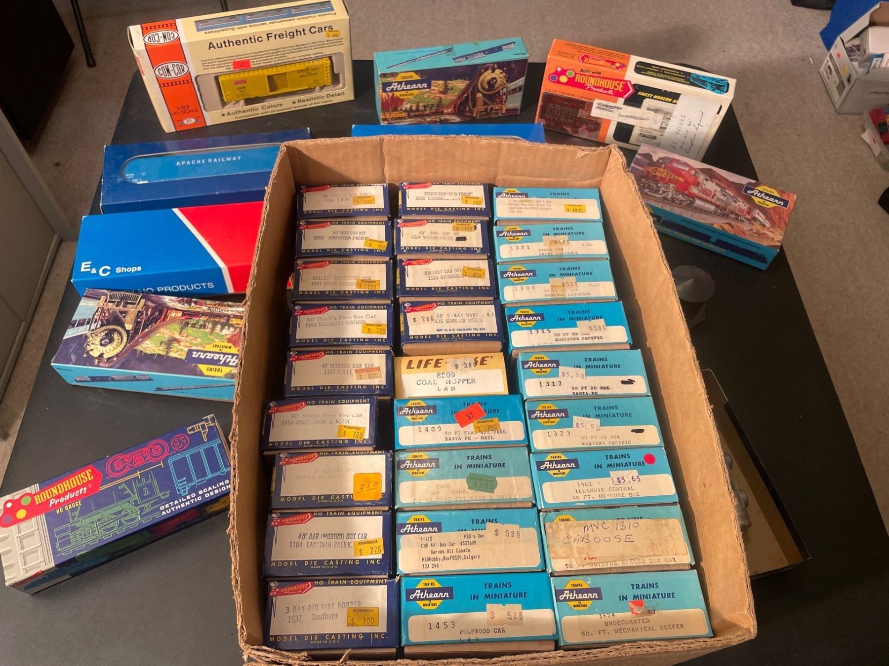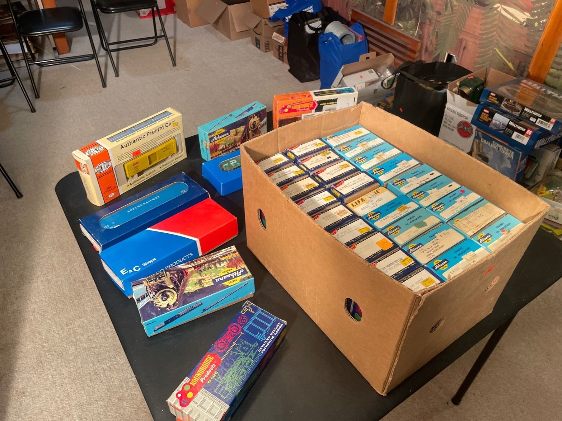 Various Box Cars in original boxes. Boxes are labelled with contents.