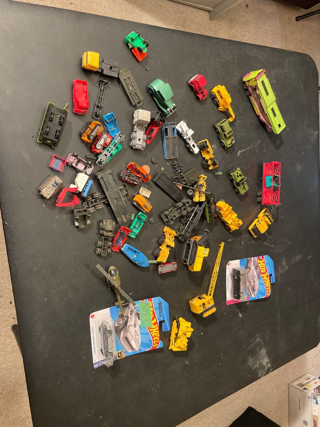 Various HO Scale Model Cras, Cranes, Tractors, Hotwheels, Helicopter, Tank.