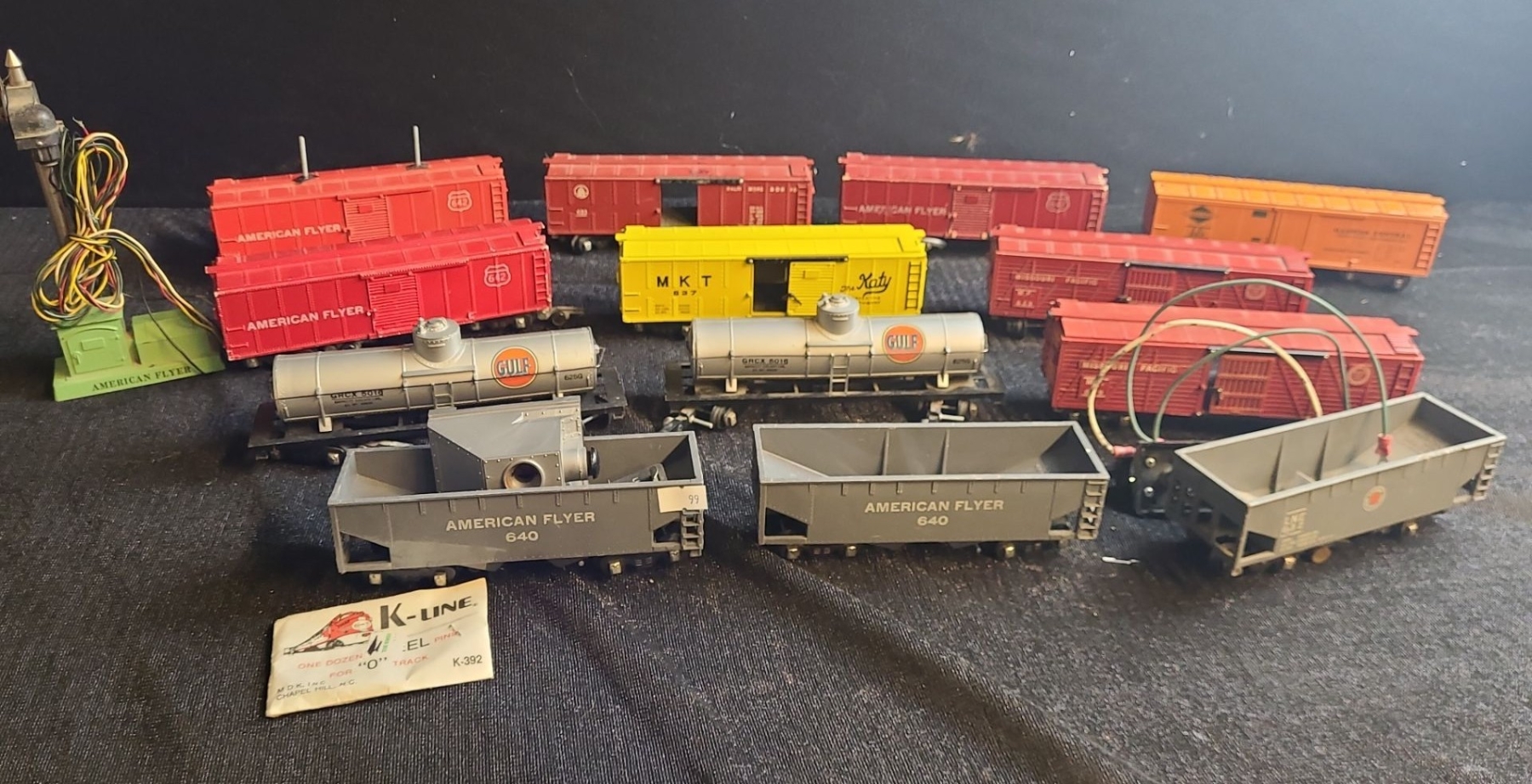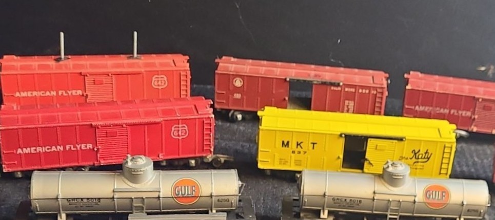 Model Trains: Semaphore, Box Cars, Gulf Tank Cars, Gondola Cars, Track Pins