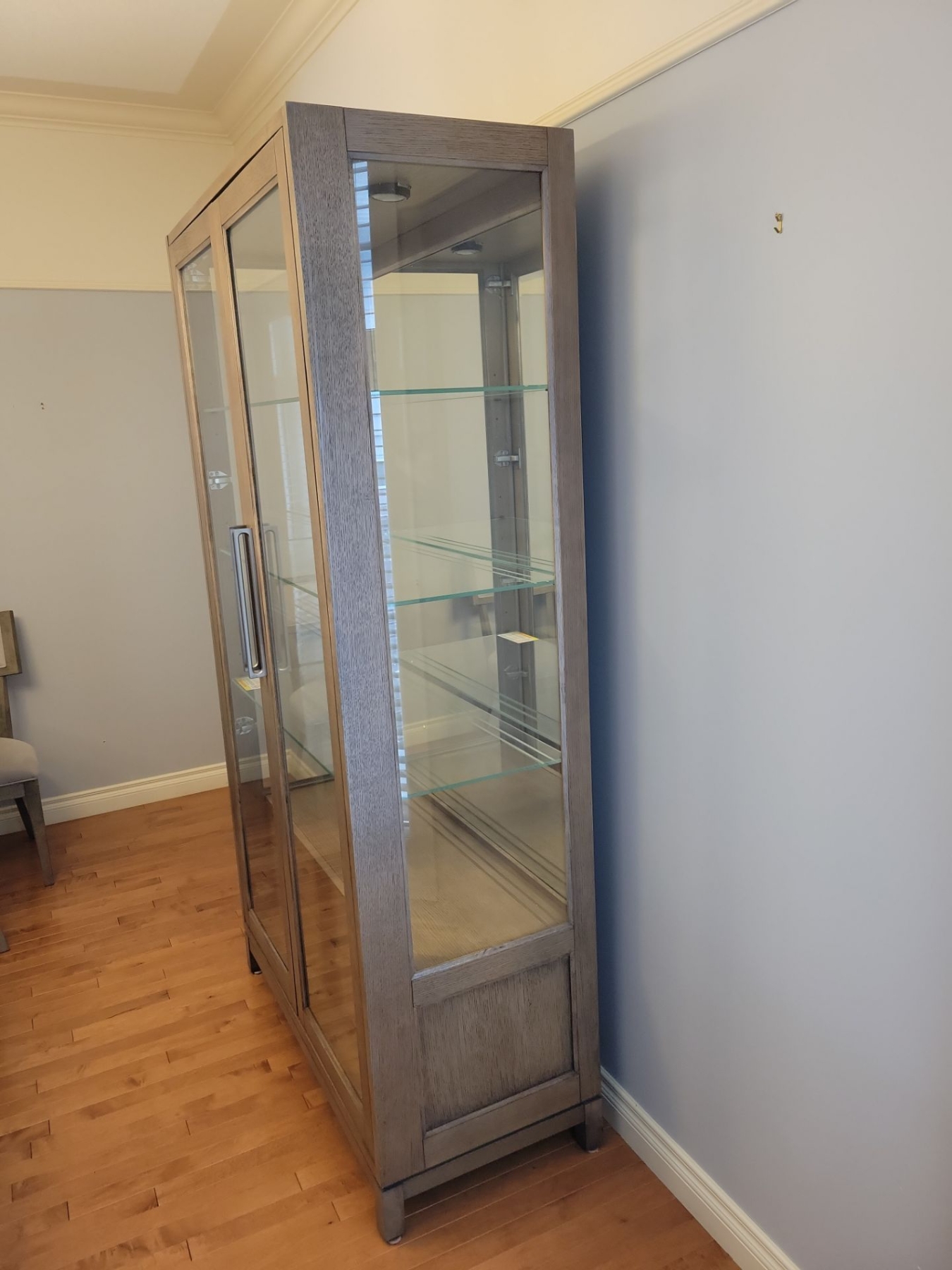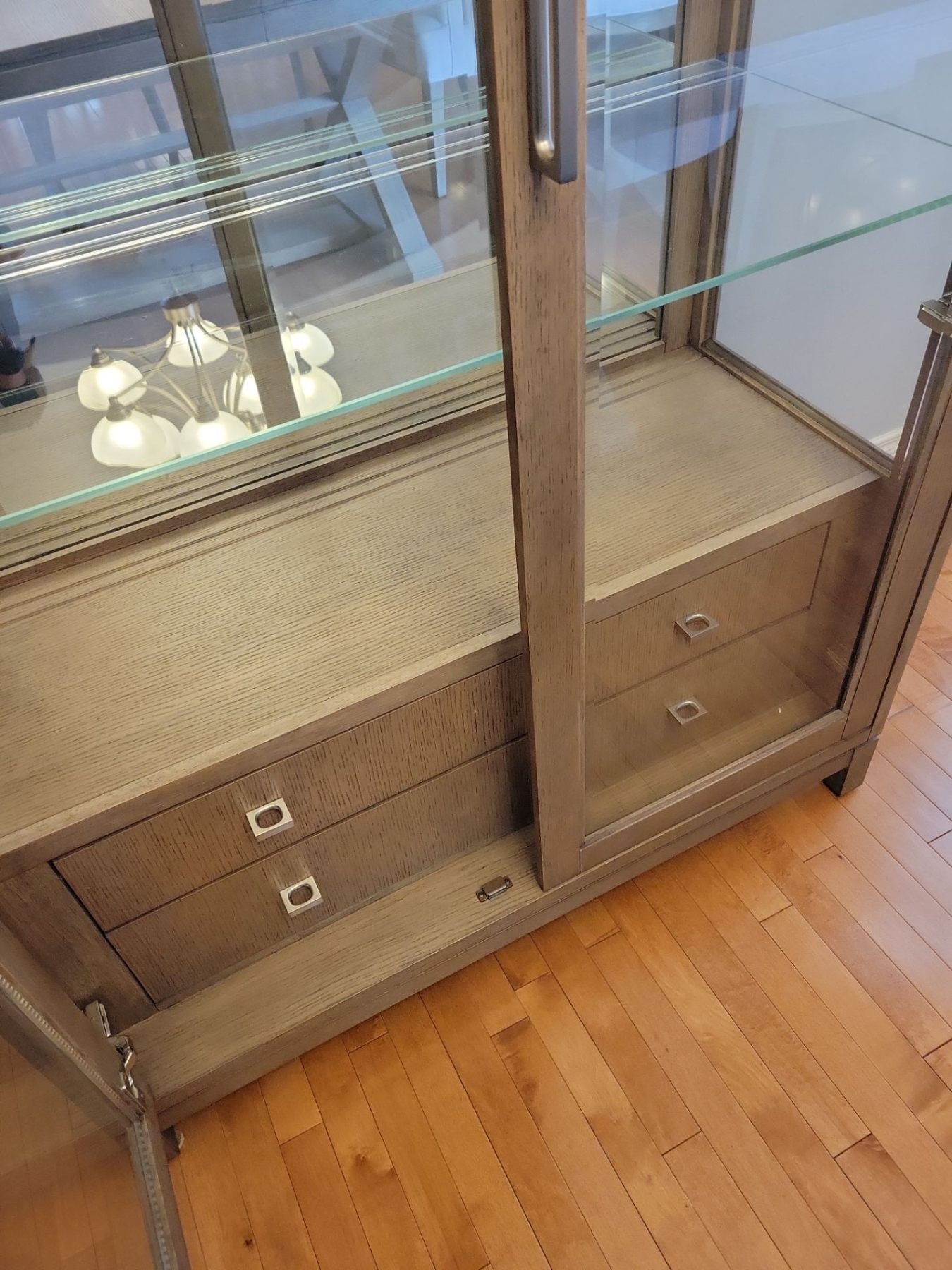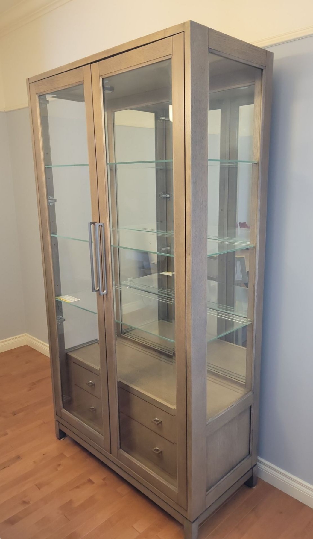 Modern Farmhouse Hutch w/ 2 Drawers 3 Glass Shelves & Brushed Nickel Accents 44x20x80
