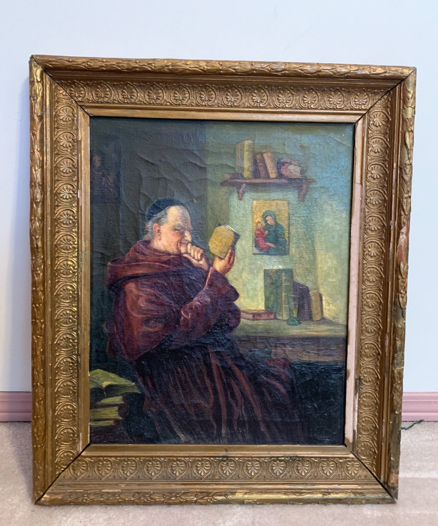 Monk Art Oil on Canvas 19x22 Artist Unknown