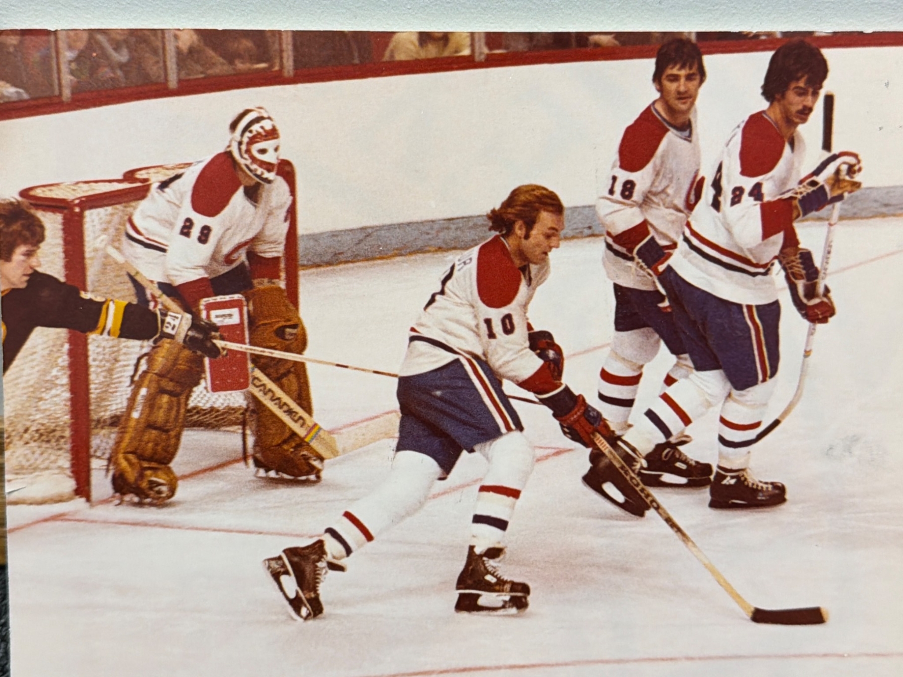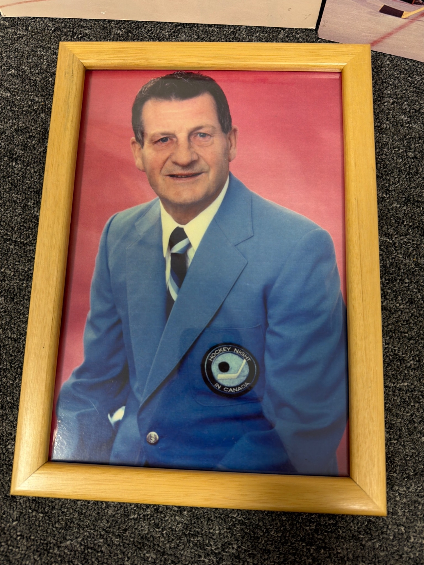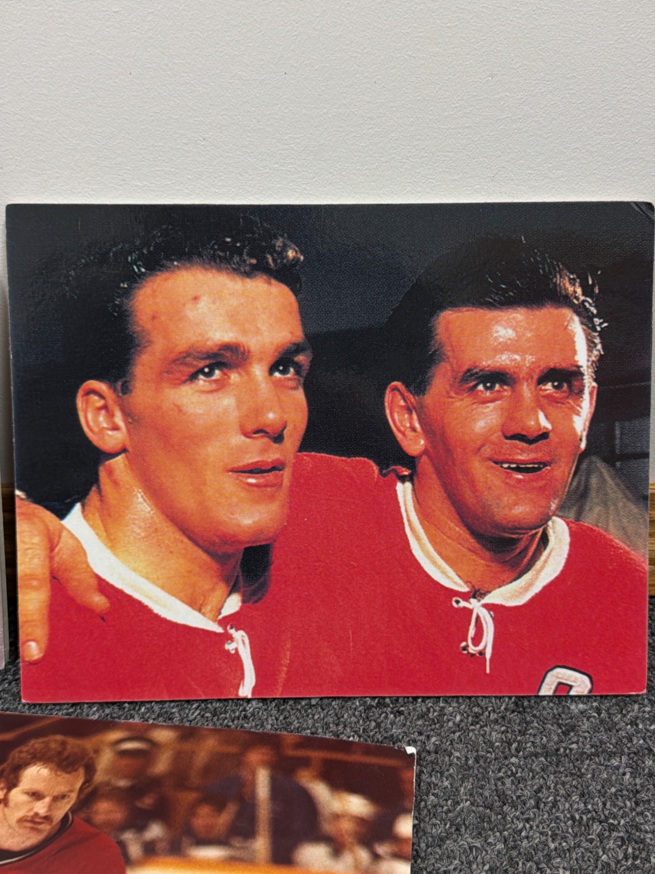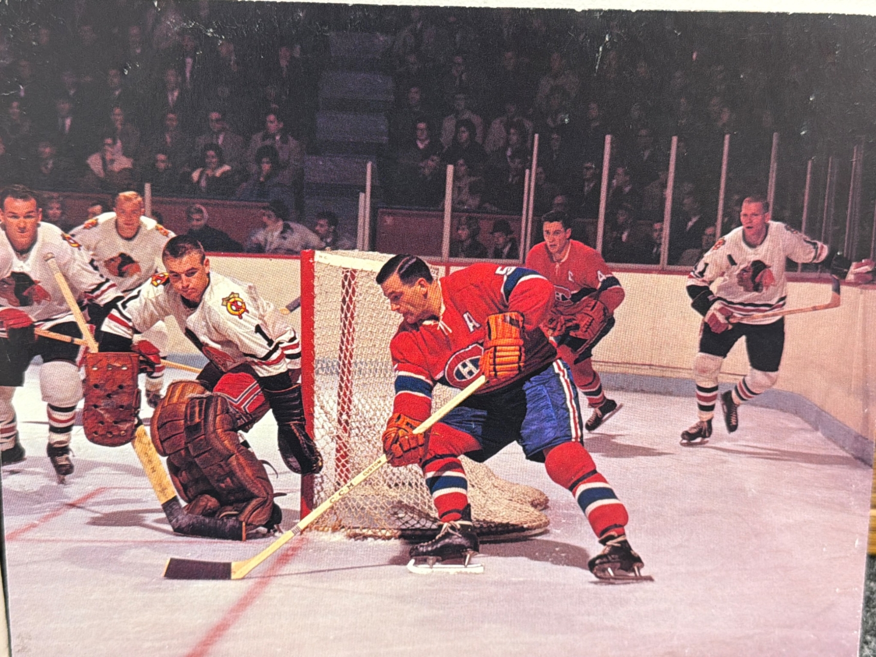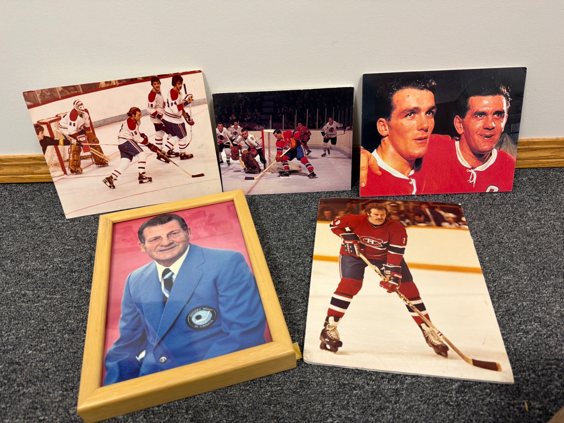 Six Montreal Canadiens-themed items, including vibrant player photos, action-packed game moments, and a framed portrait of a notable individual in a blue blazer. Perfect for hockey enthusiasts and Habs fans, this set celebrates the rich history and legacy of one of the NHL's most storied franchises.