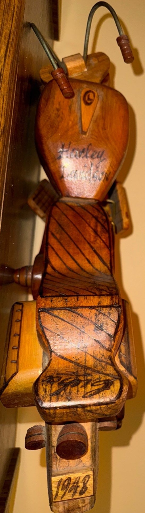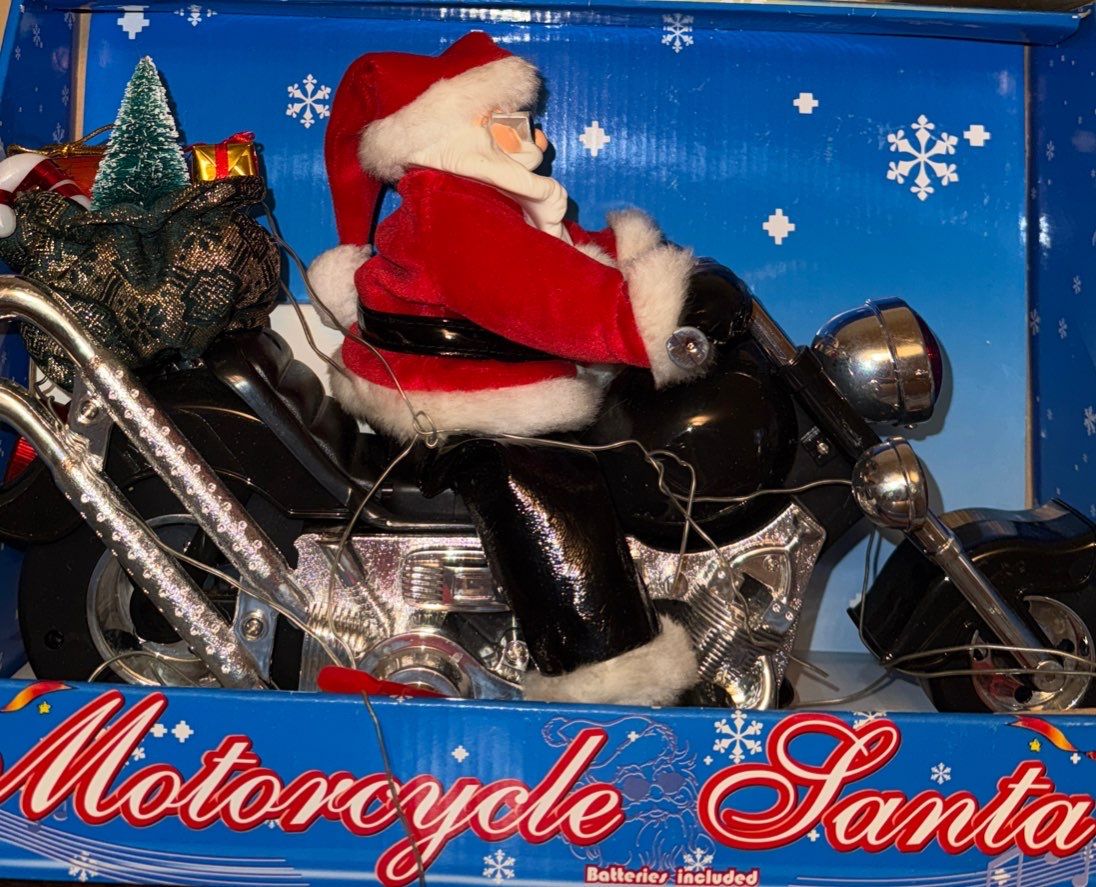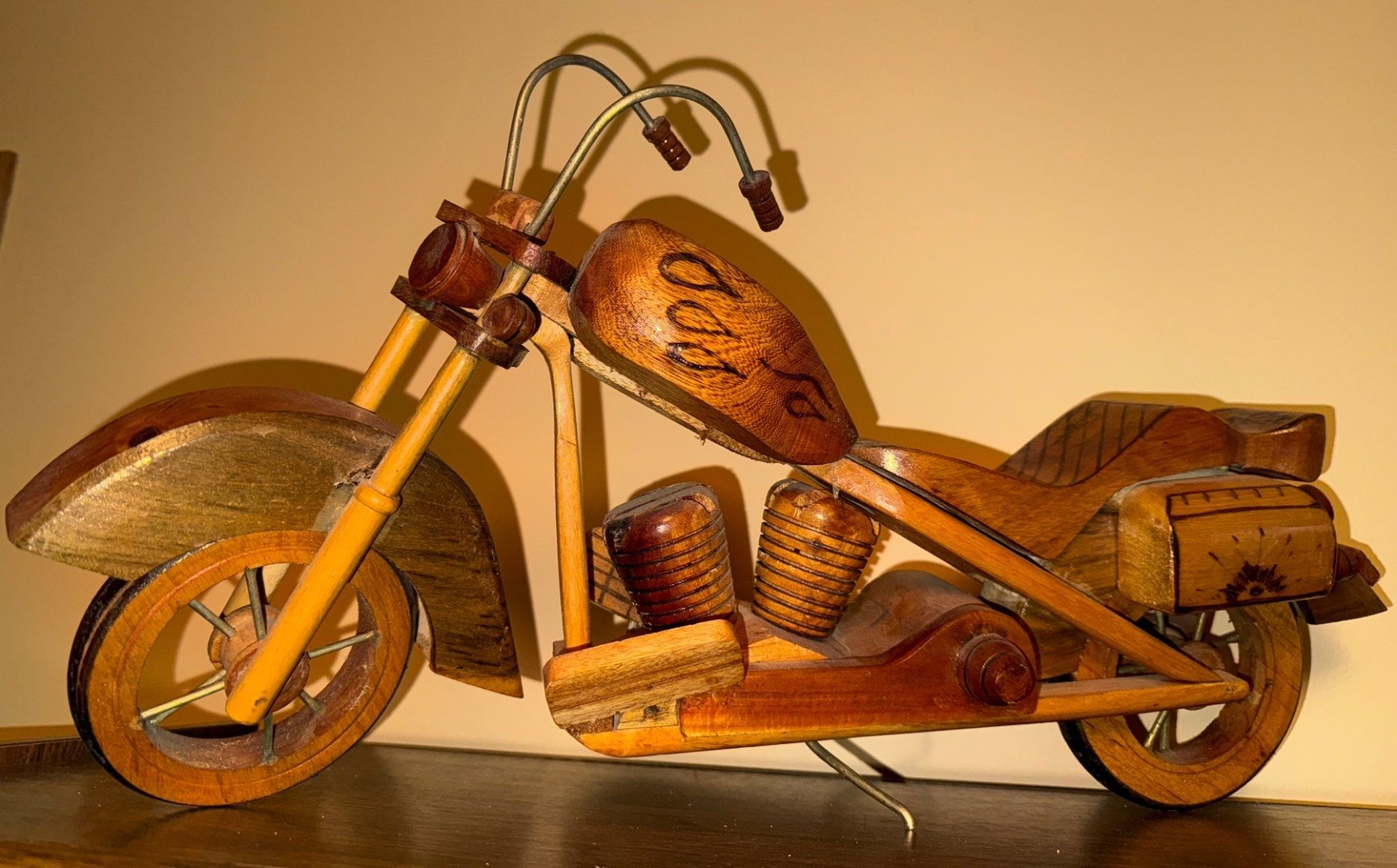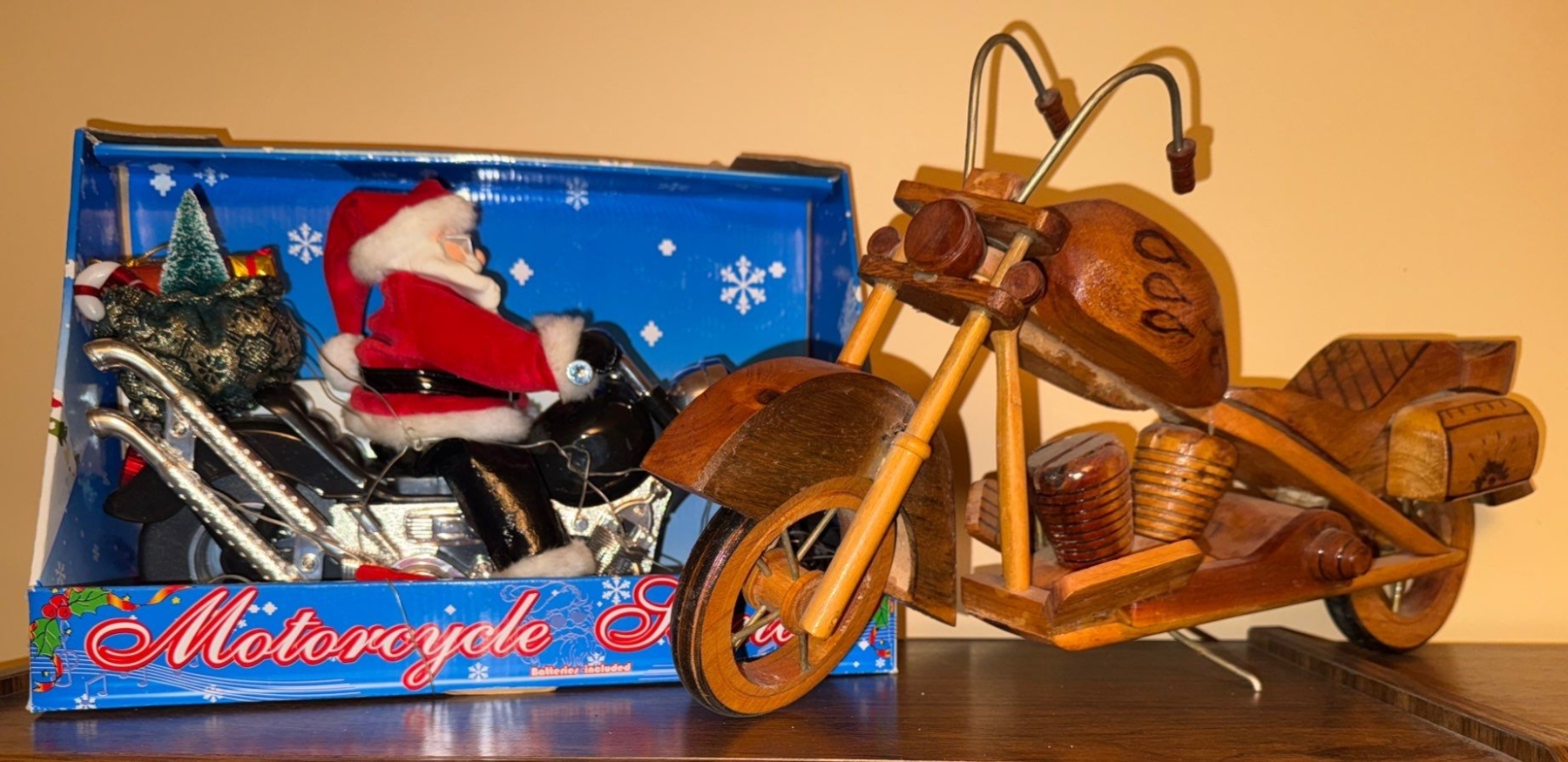 Motorcycle Santa & Handmade Wooden Carved Harley Davidson Keepsake Mini Bike