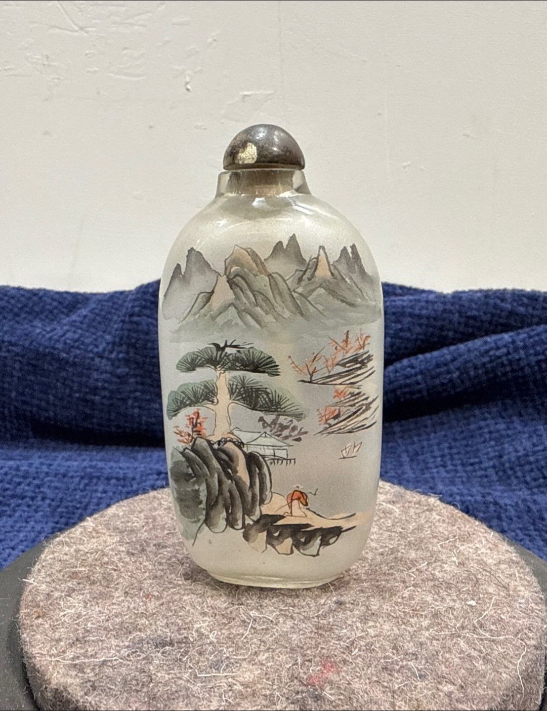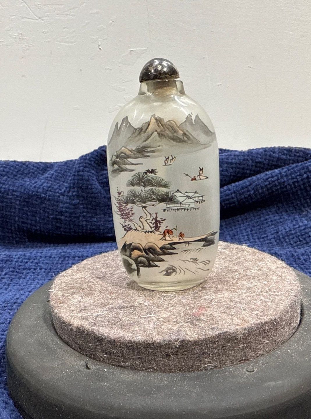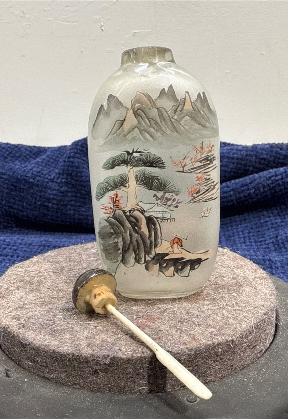 Mountain Landscape Snuff Bottle with Spoon 3.25H
