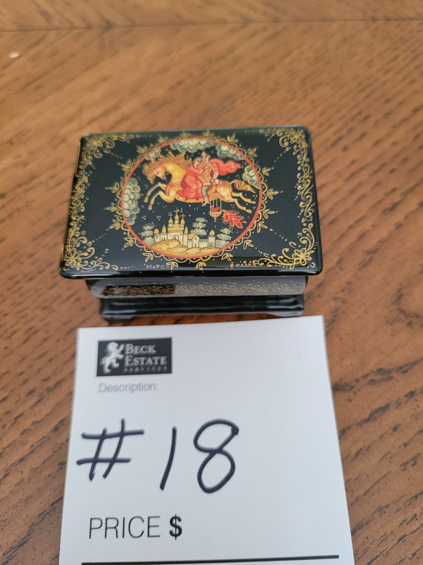 Rectangular Scene Framed by Elaborate Gilt Border Band, Set on Bracket Frame and Four Feet, 1 5/8"h x 2 5/8"w x 1 3/4"d and it is Signed.
