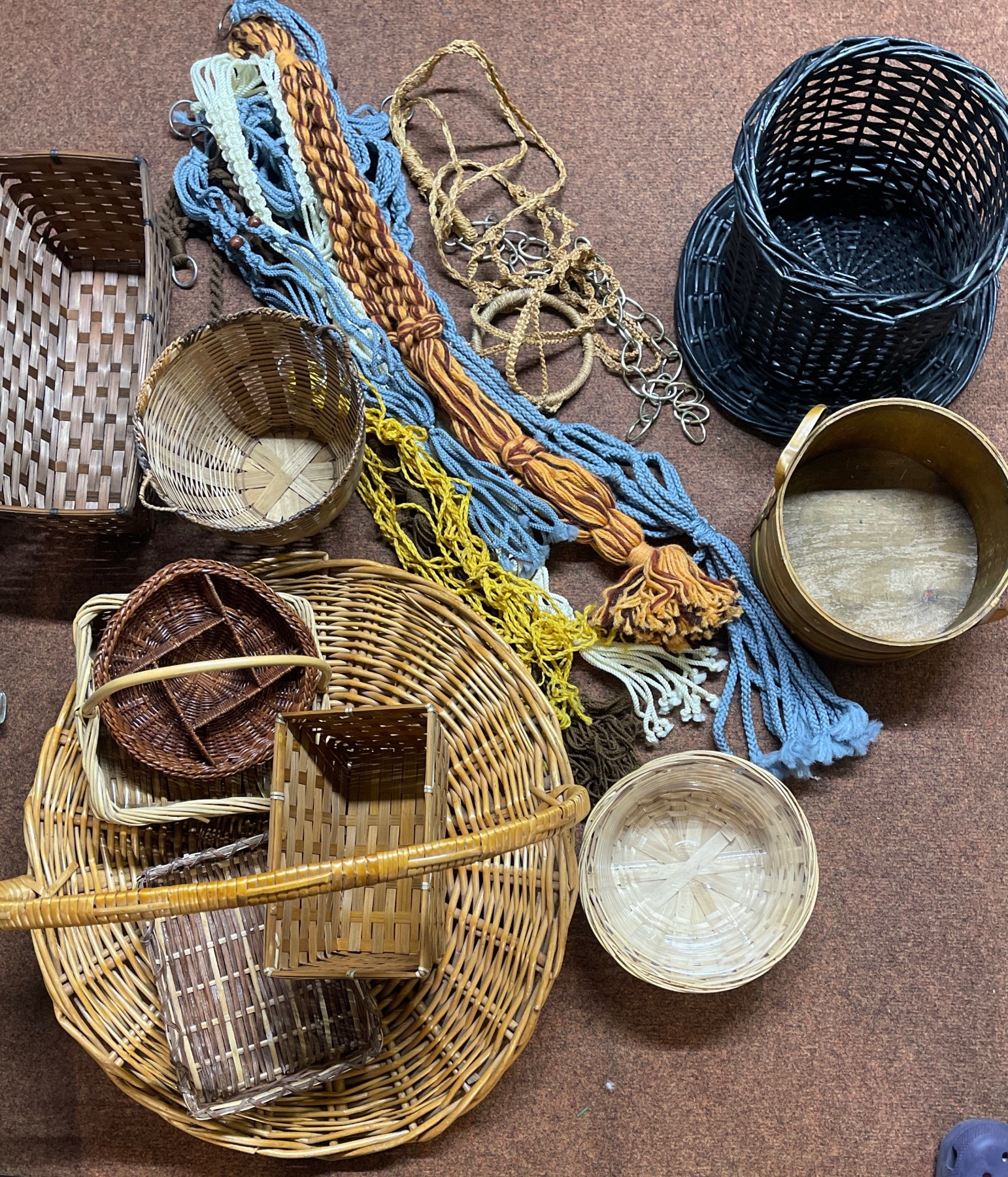 Multiple Baskets w/ assorted Macrame Plant Hangers