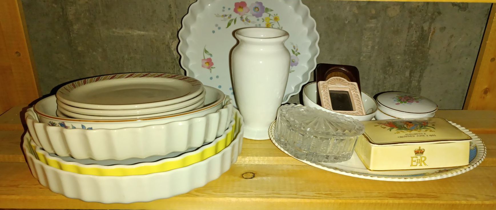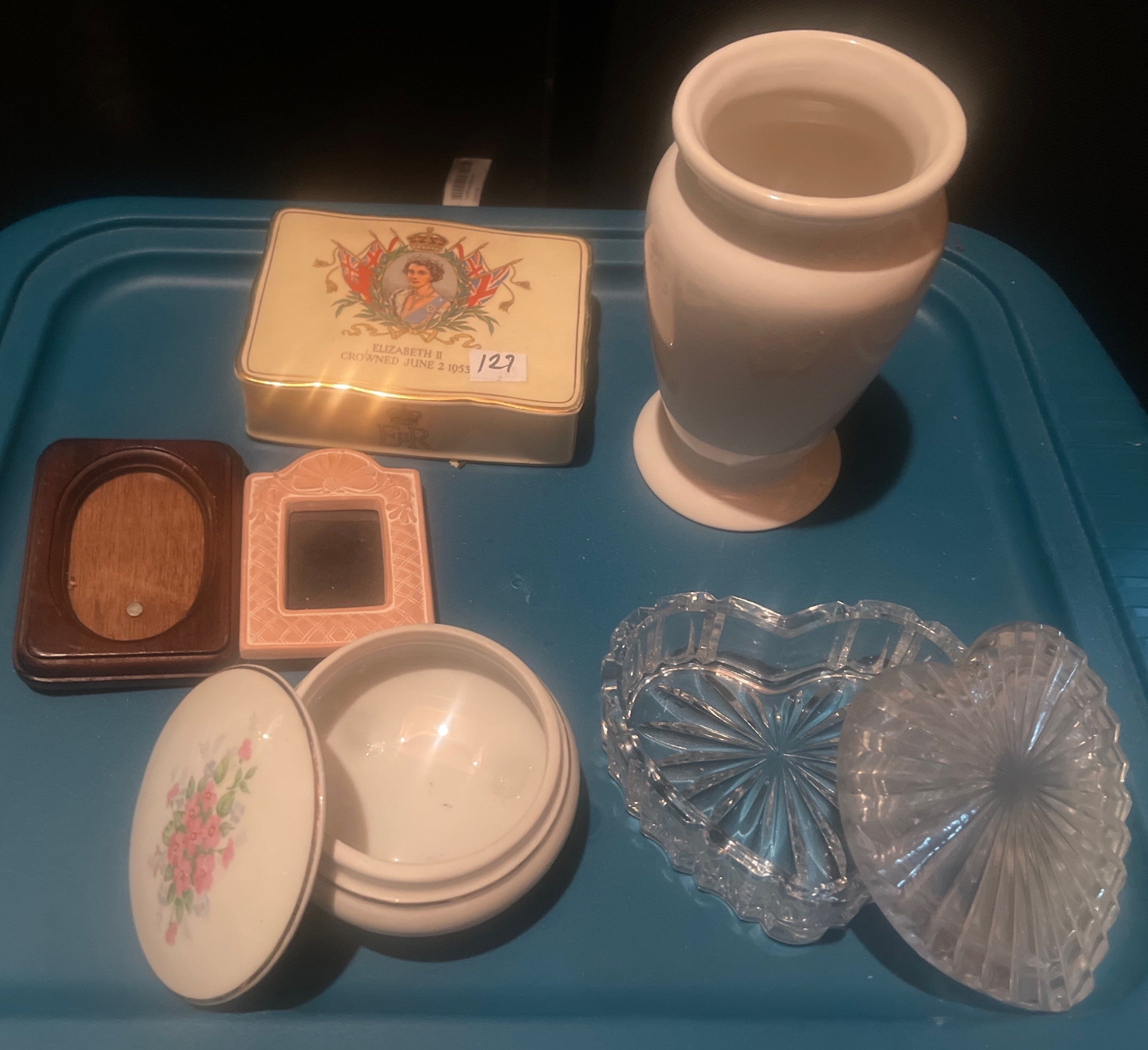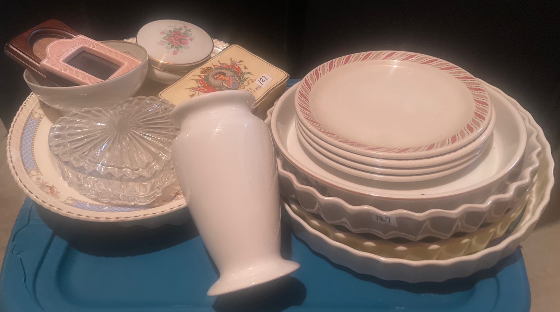 Multiple Collection Of Trinket Boxes, Mini Frames, White Vase, Glass Cake Pans & Pretty Plates
