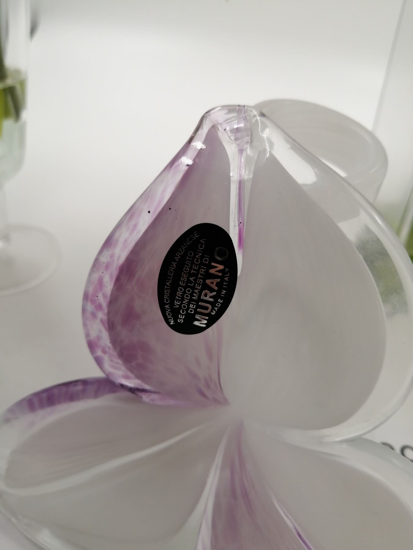 Murano Art Glass Flower and Two Artificial Flowers in Gel