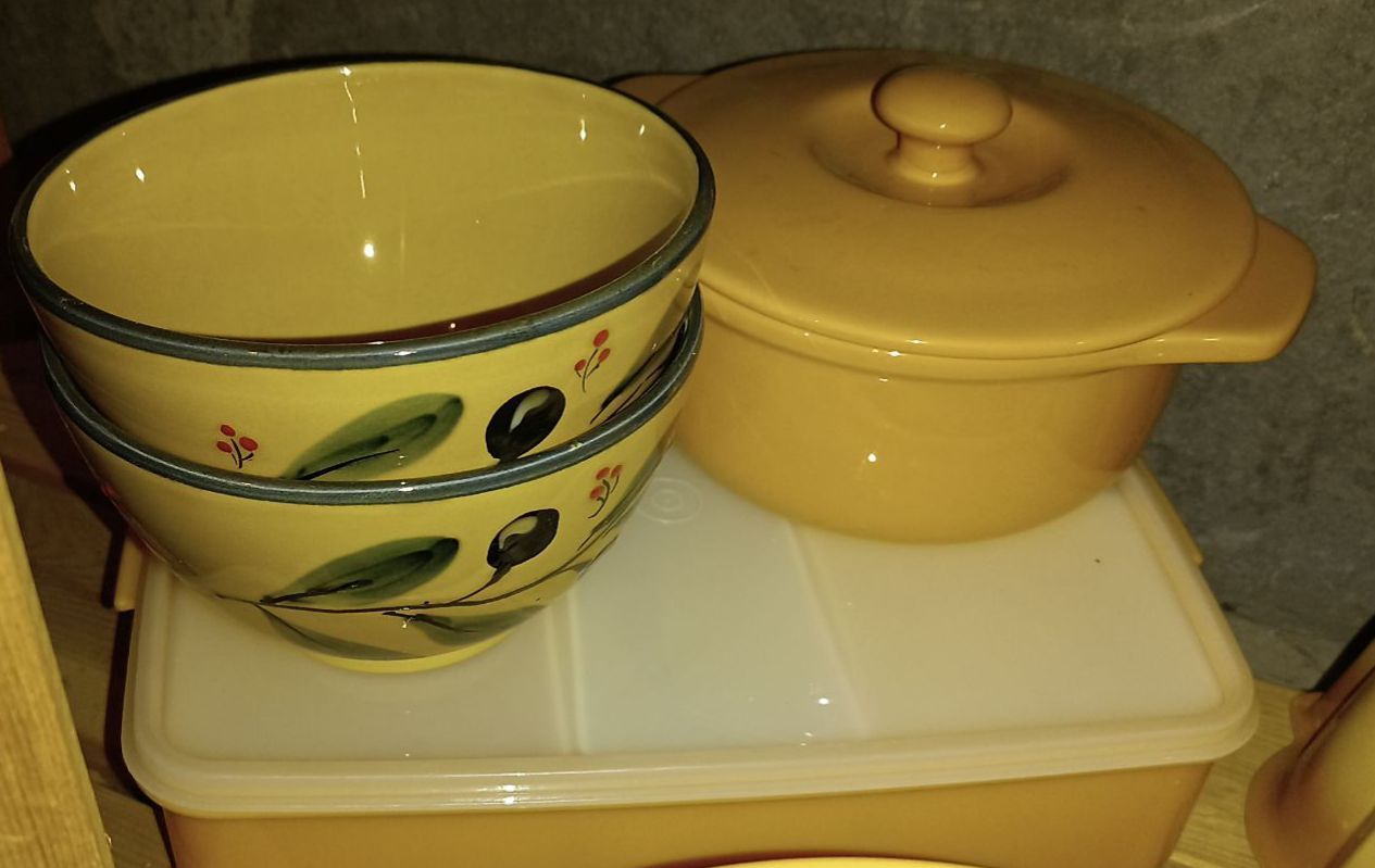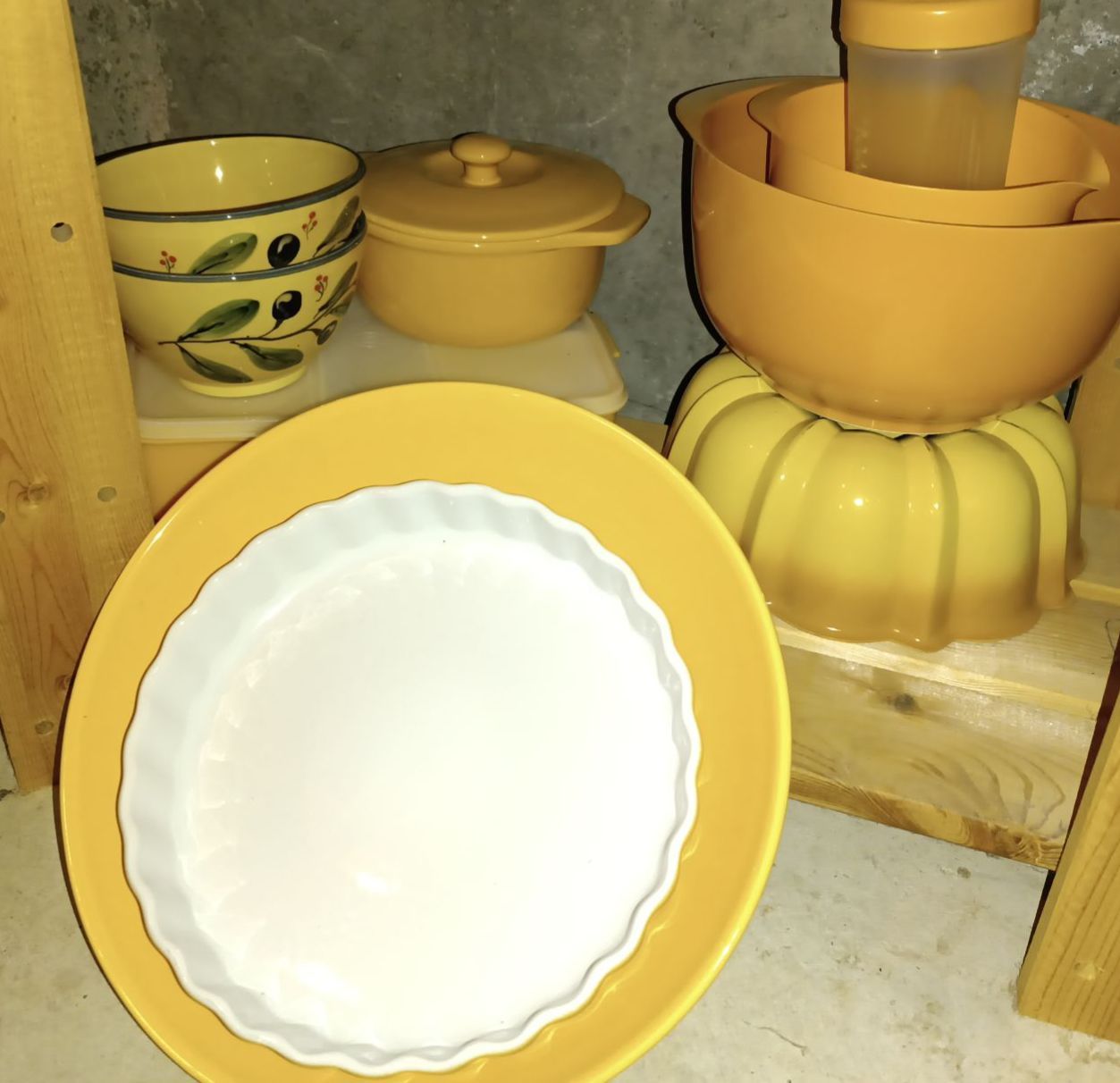 Mustard Color Kitchen Decor & Mixing Bowls, Angel Food Cake Pan, Casserole Dish, Bowls,