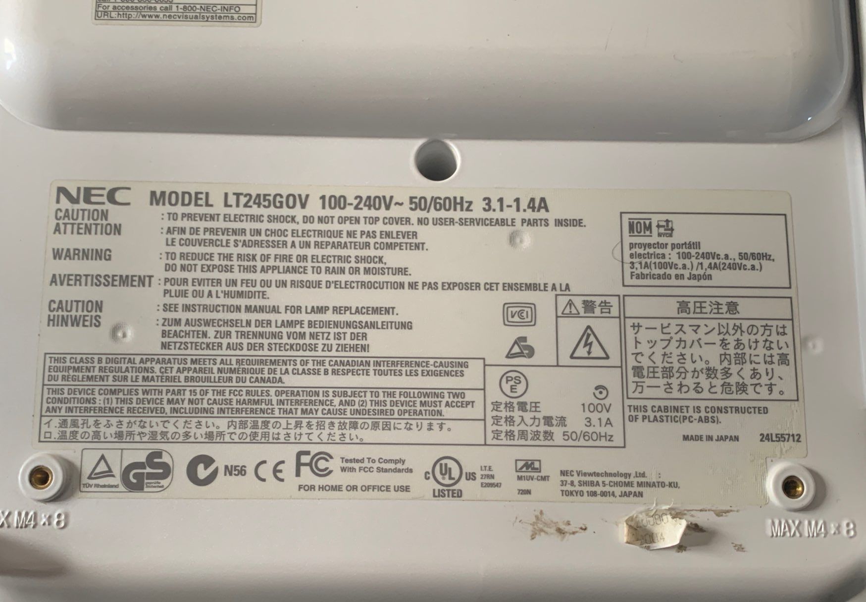 NEC NT245 Projector w/ Protective Travel Bag