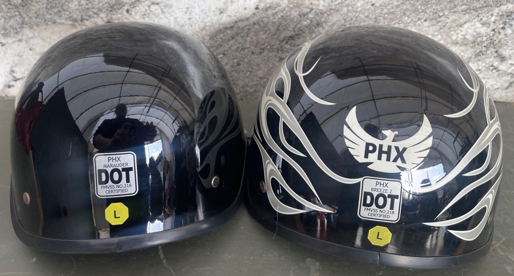 NEW FULMER MX Helmets - PHX Marauder Size L Black & PHX Breeze 2 Size L Flames