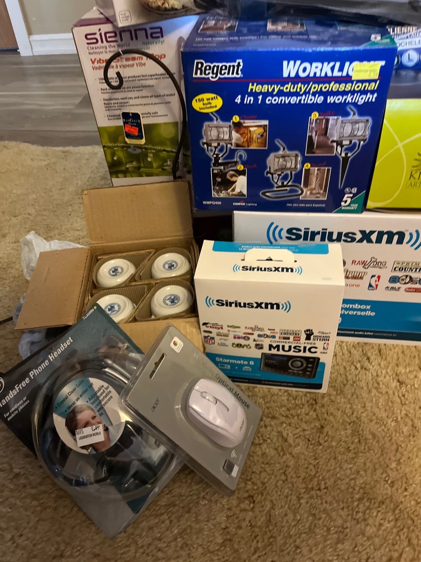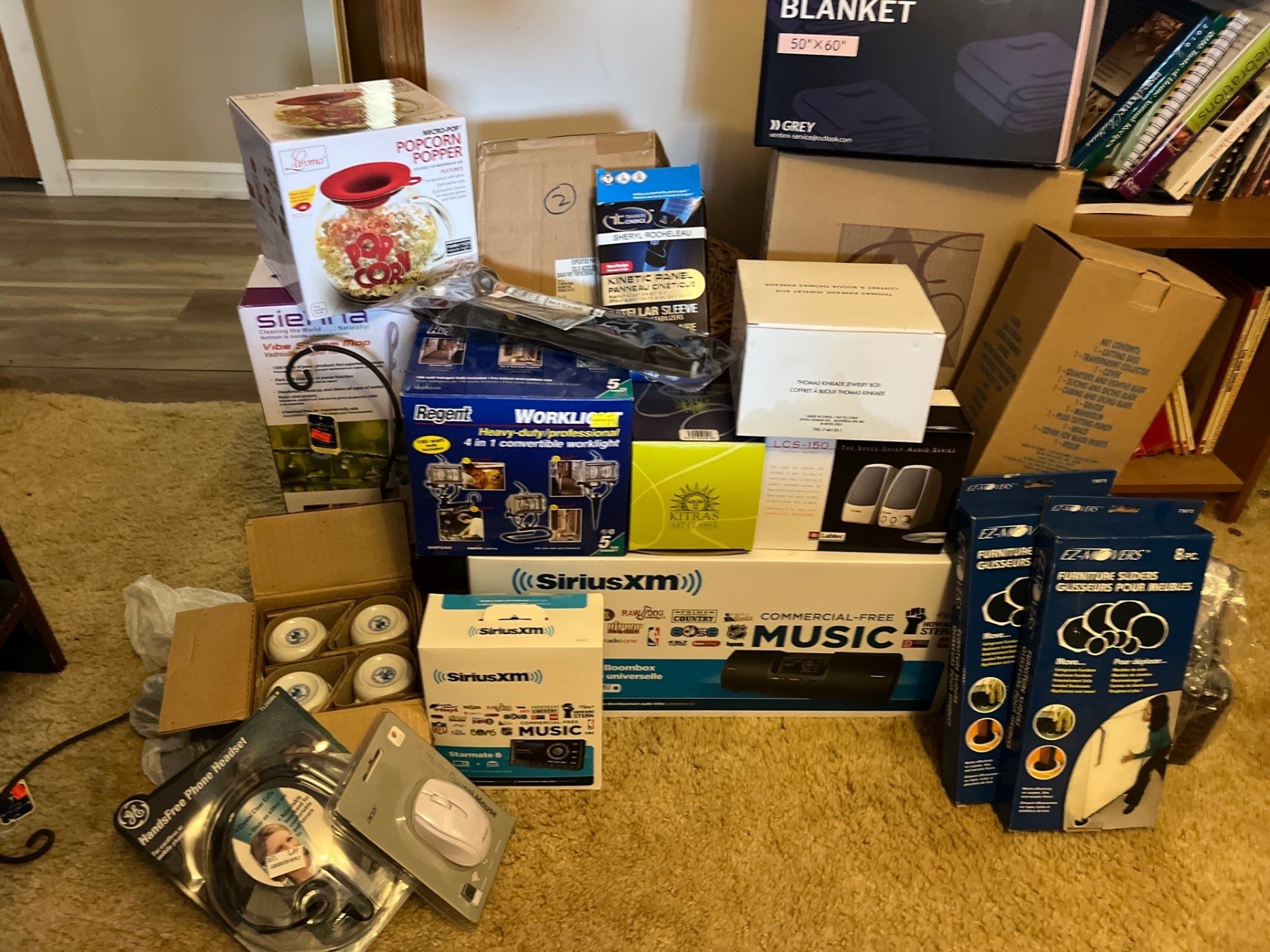 NEW NEW NEW large assortment of new items all of them in original packaging never been open with price tags . Brand new SiriusXM radio, electric blankets, steam mops, and so much more.