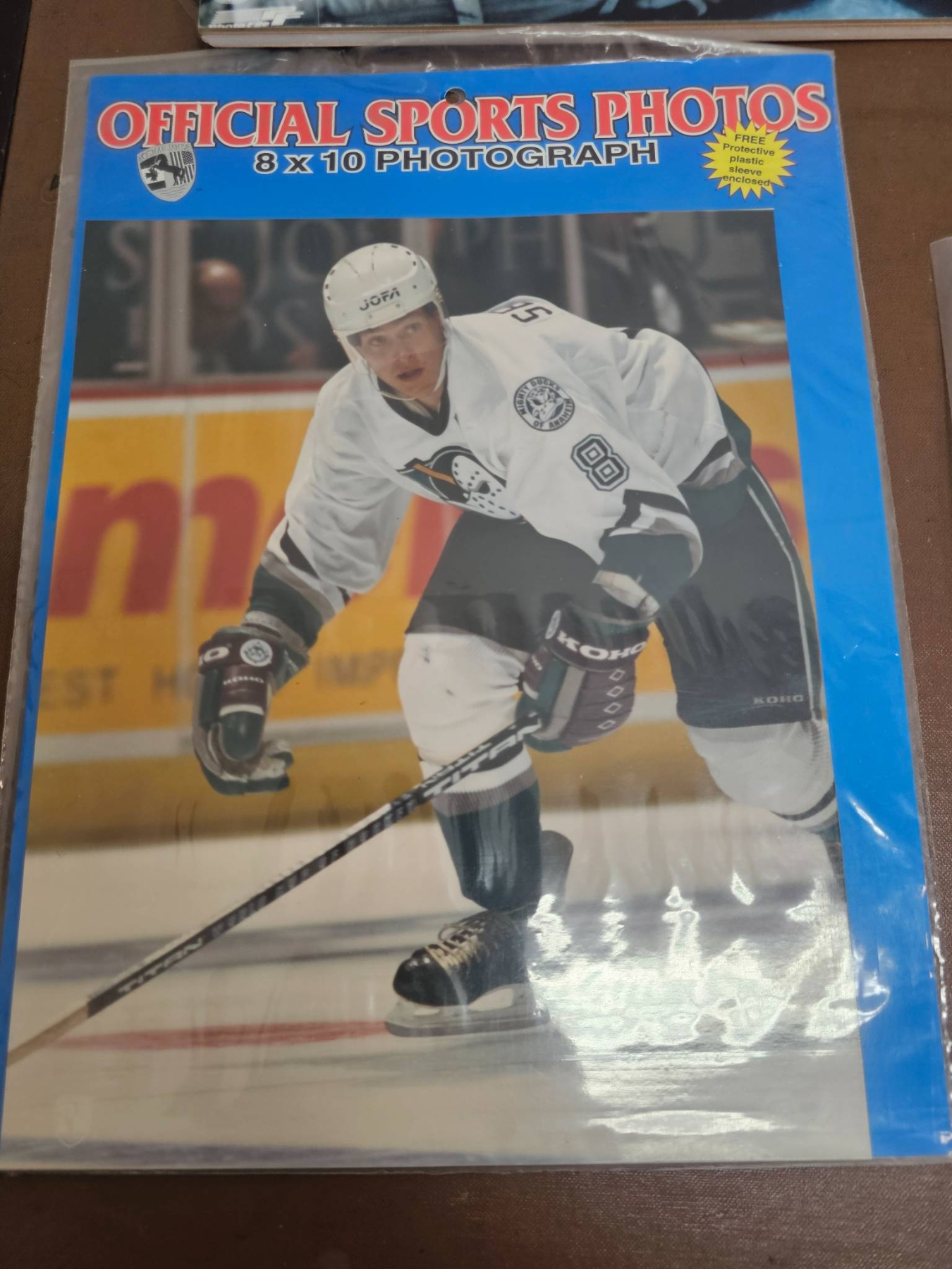 A mix of NHL memorabilia, including multiple official 8x10 photographs of the Dallas Stars and St. Louis Blues players, game action moments, and Stanley Cup celebrations. Highlights include a Hockey News magazine featuring Mike Modano and the Dallas Stars, as well as other keepsakes capturing iconic NHL moments. Perfect for collectors or hockey enthusiasts.
