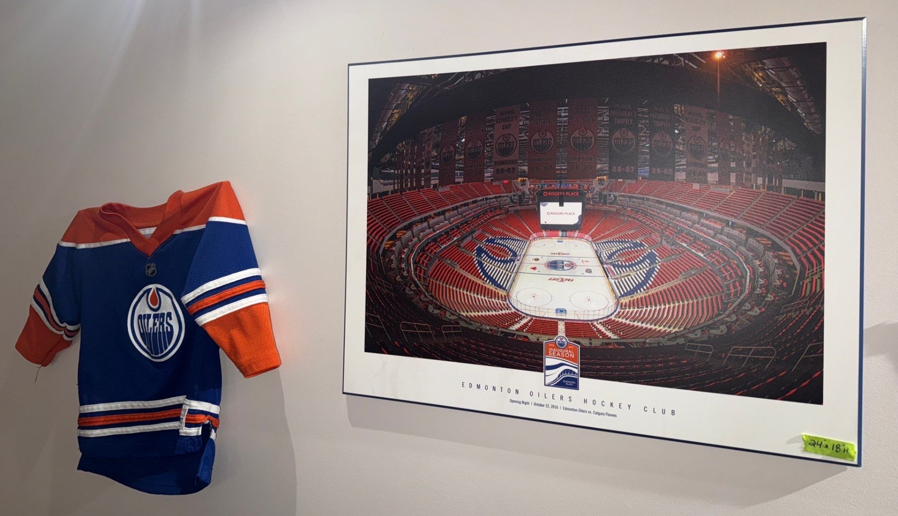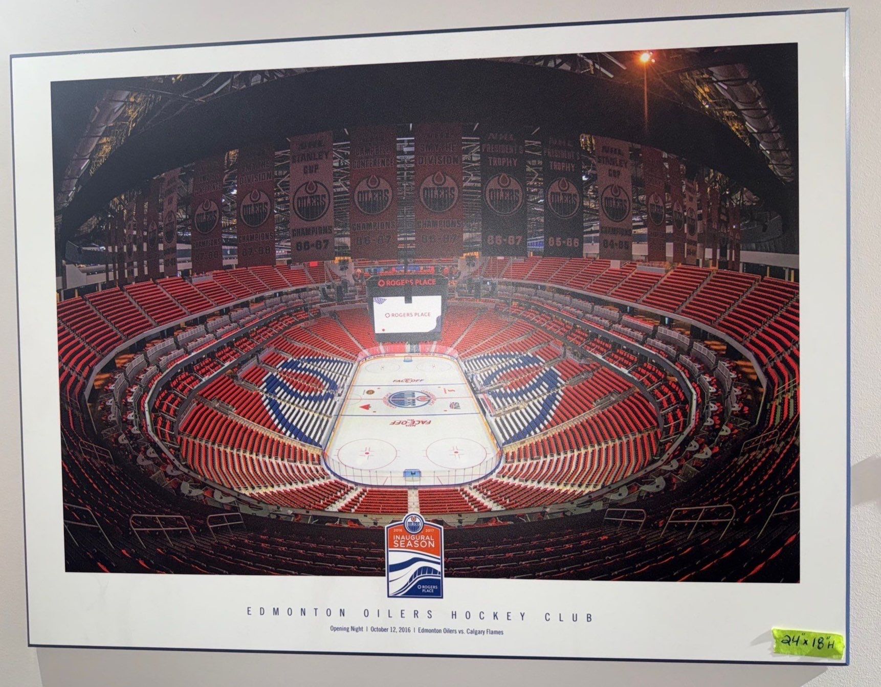 NHL's Edmonton Oilers Mini Jersey & Hockey Club 2016 Opening Night Mounted Poster