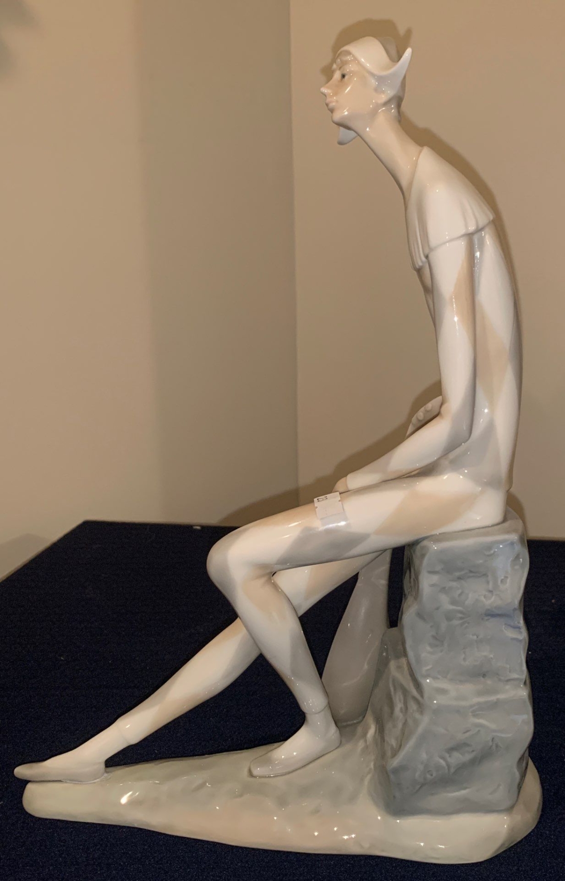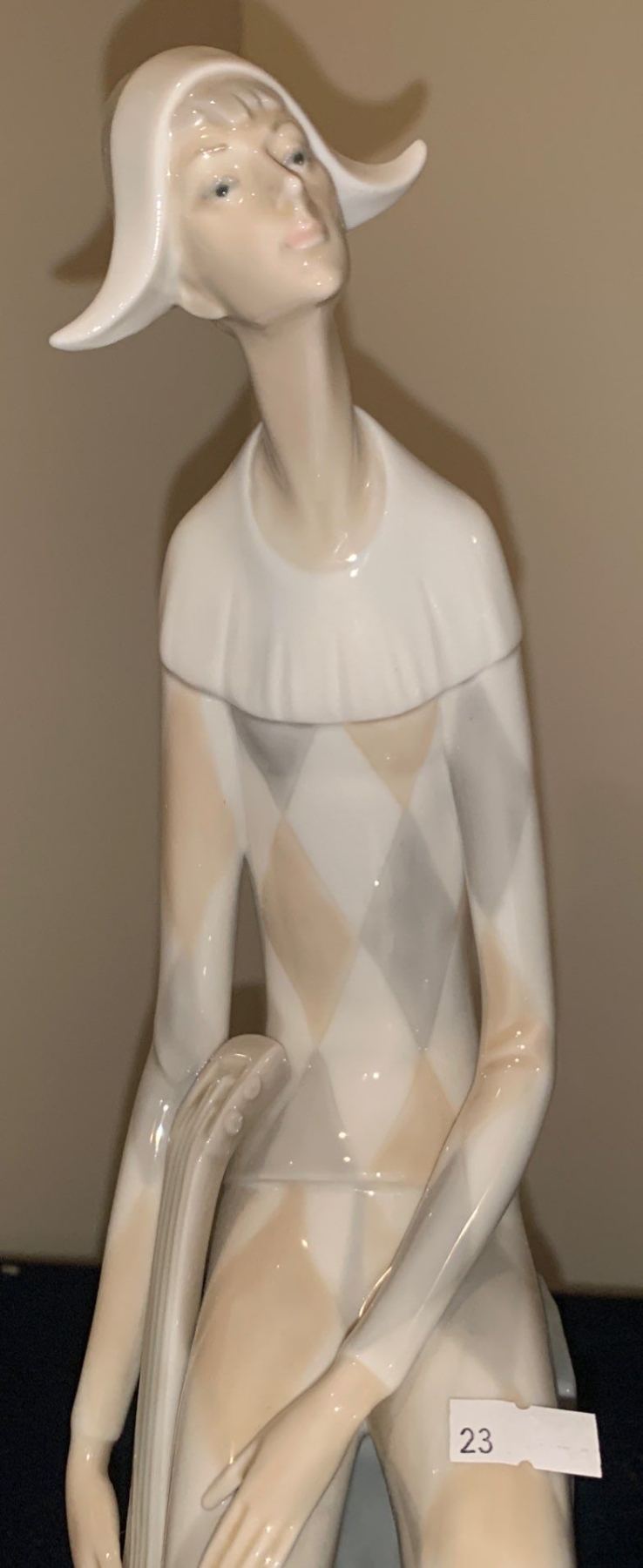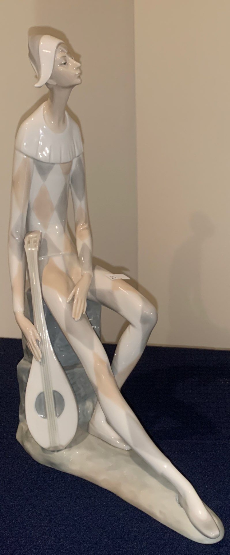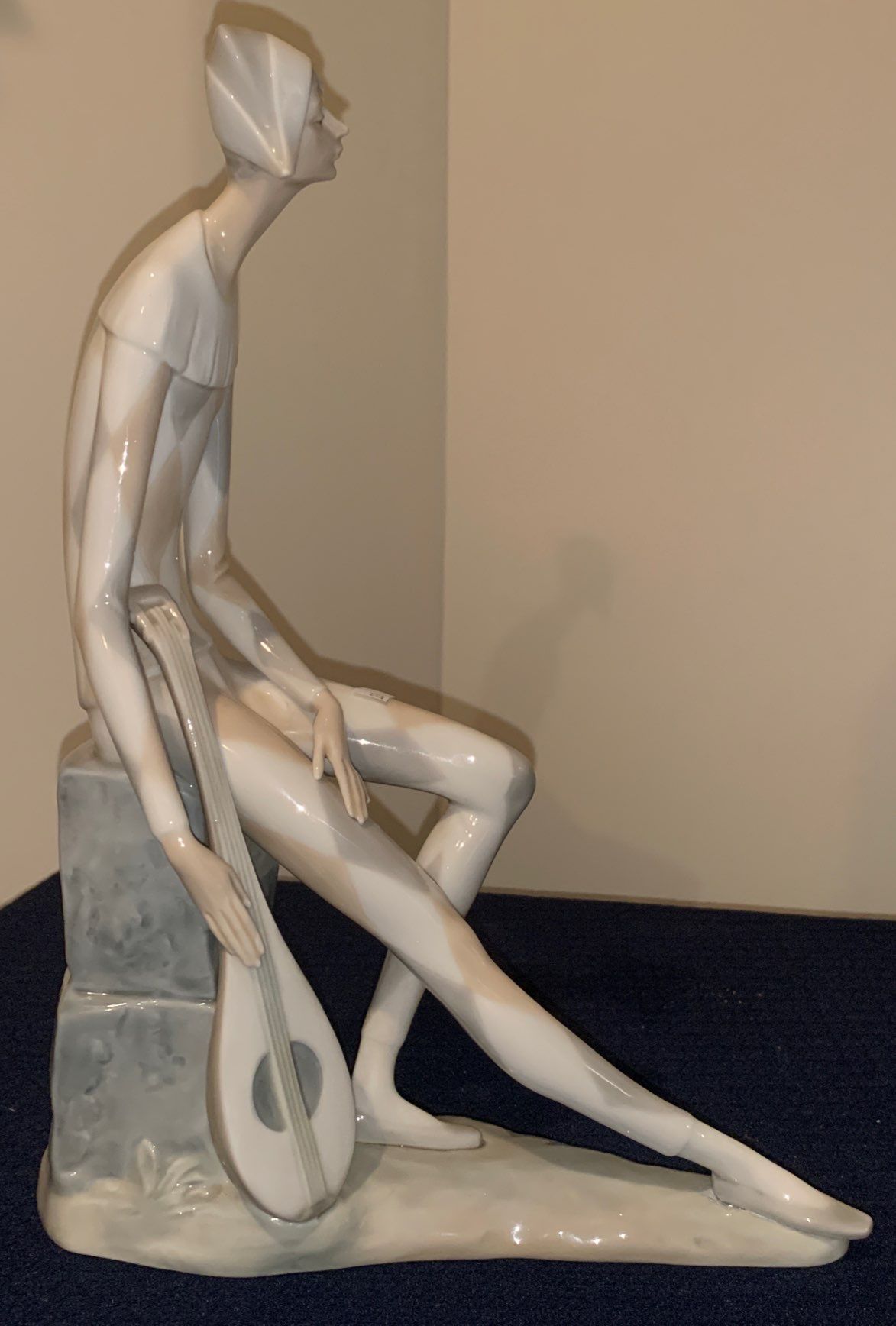 Nao By LLADRO Porcelain Sitting Harlequin Mandolin Player Sculpture  - 5W, 11D, 14T