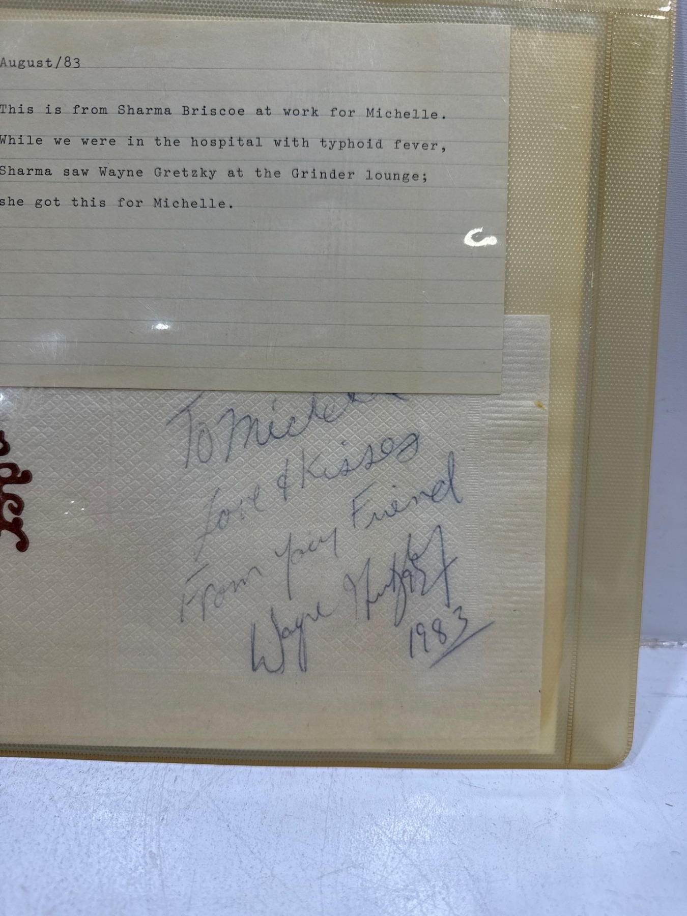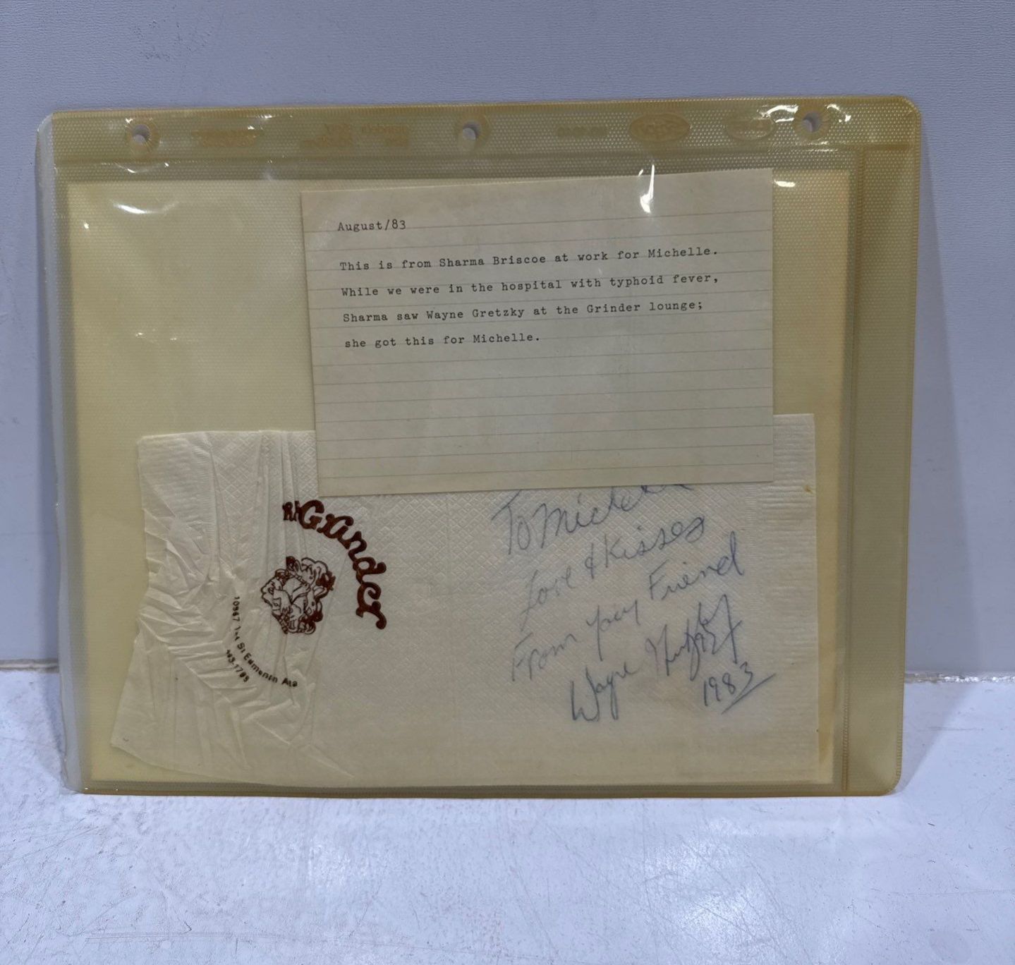 Napkin Signed by Wayne Gretzkey