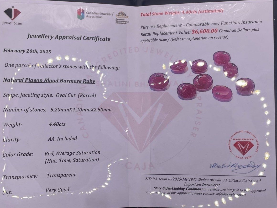 Natural Pigeon Blood Burmese Ruby. 4.40cts, AA Clarity, Red Average Saturation.