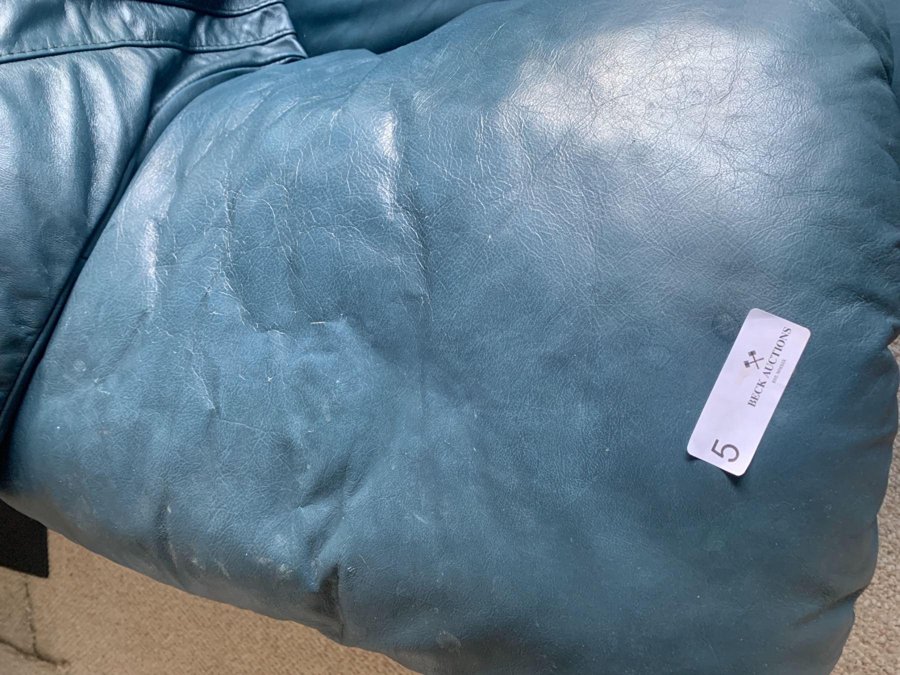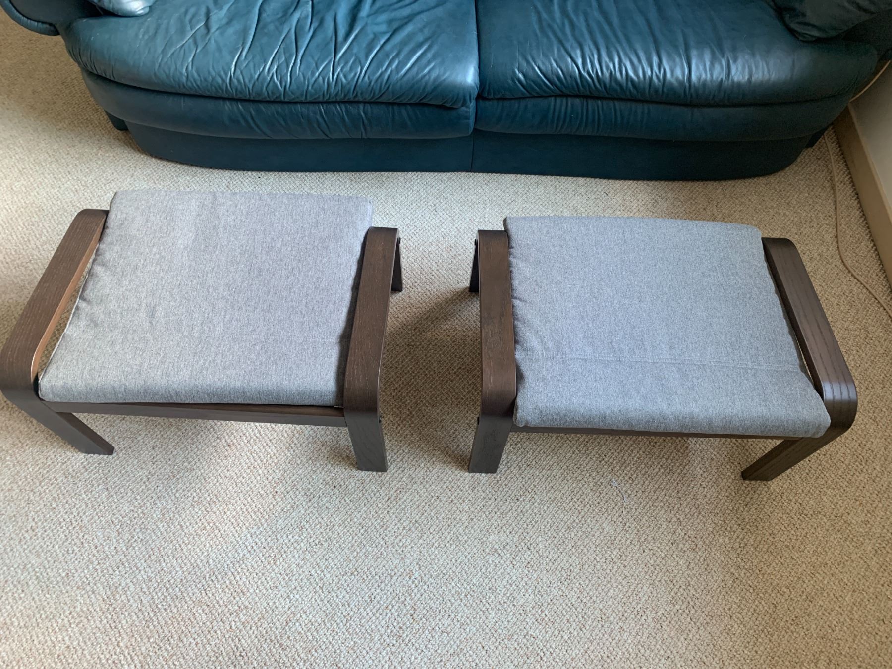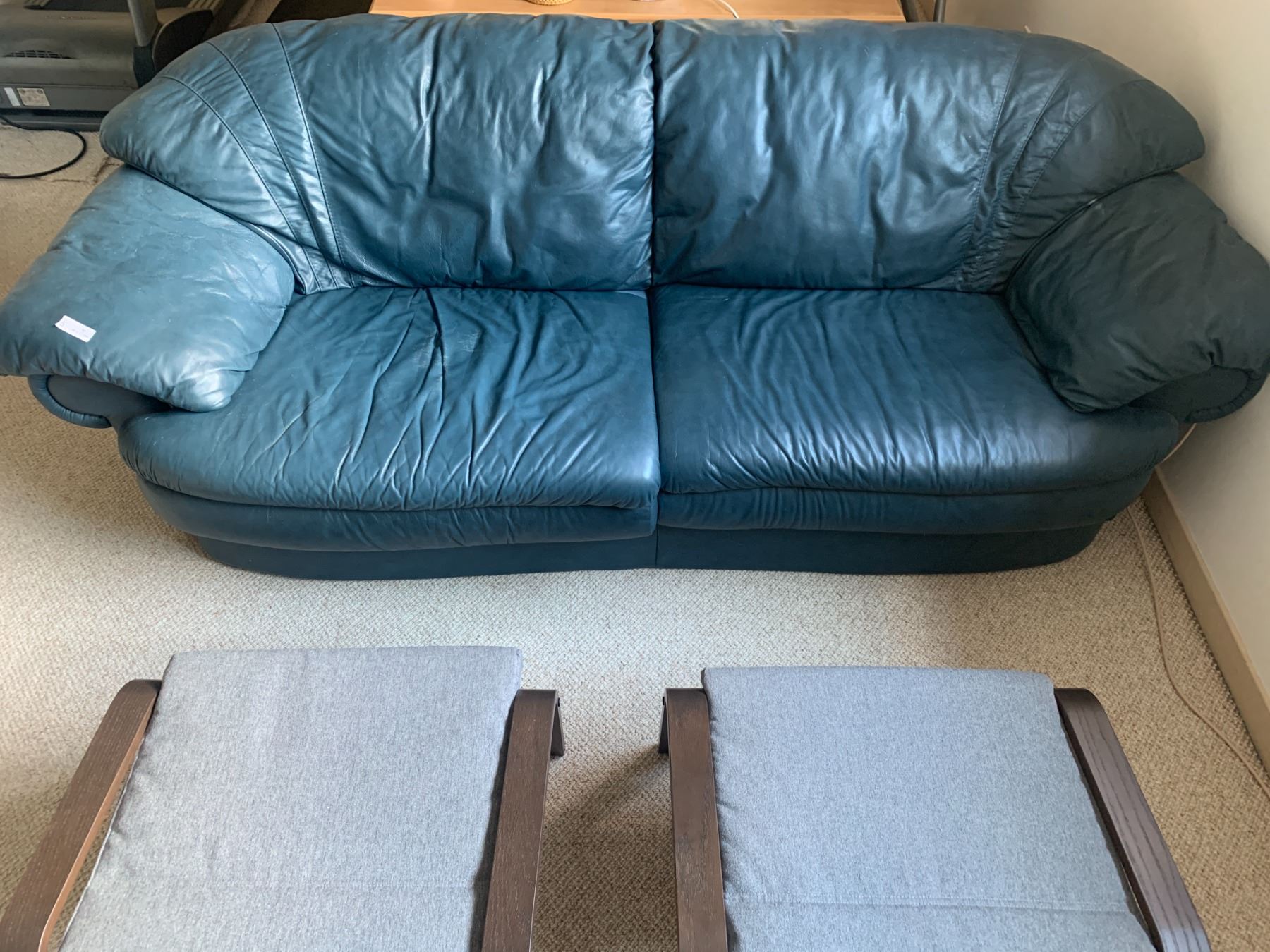 Navy Blue Leather Couch and 2 x IKEA  Poang Cushioned Upholstered Footstools