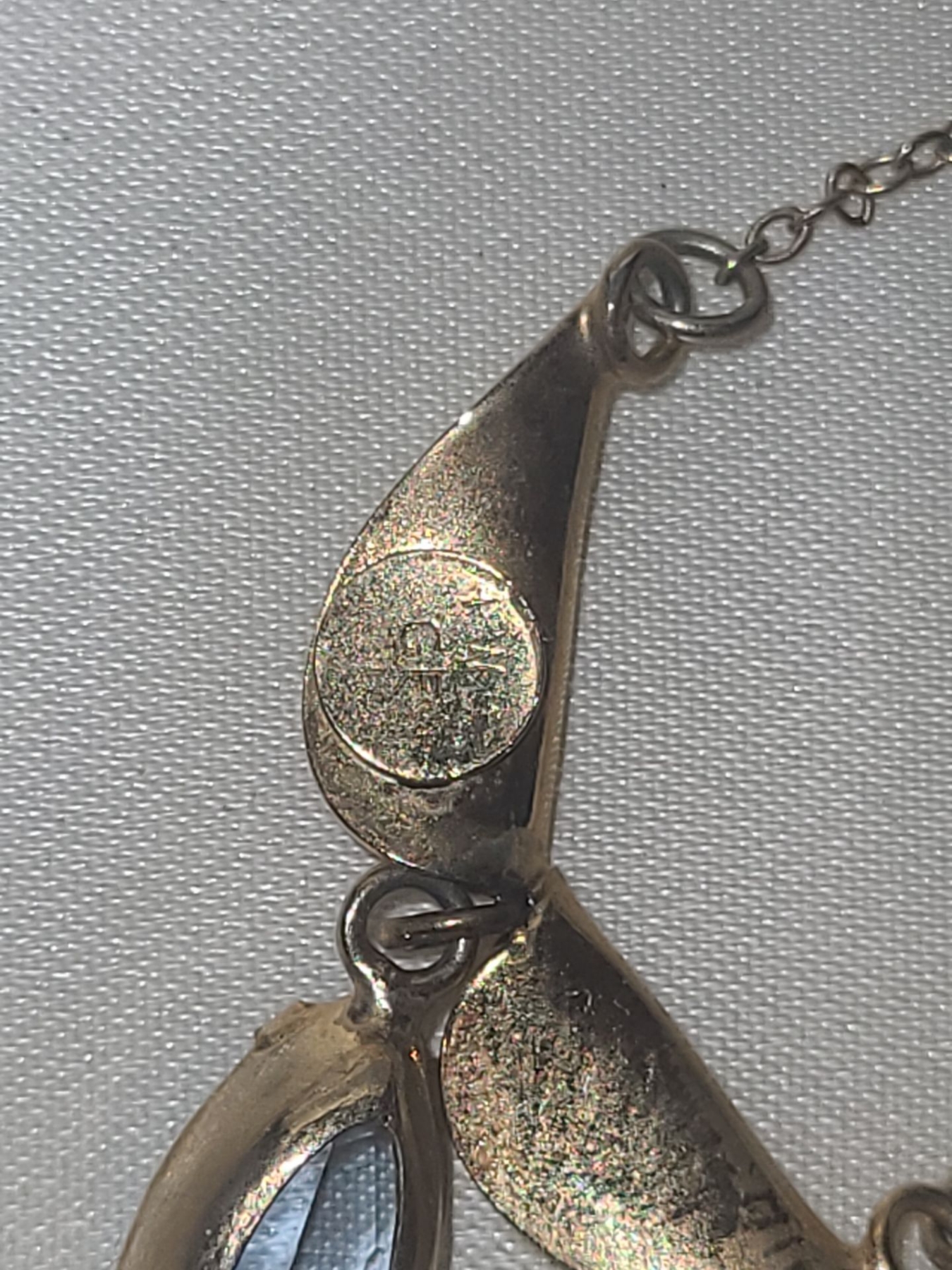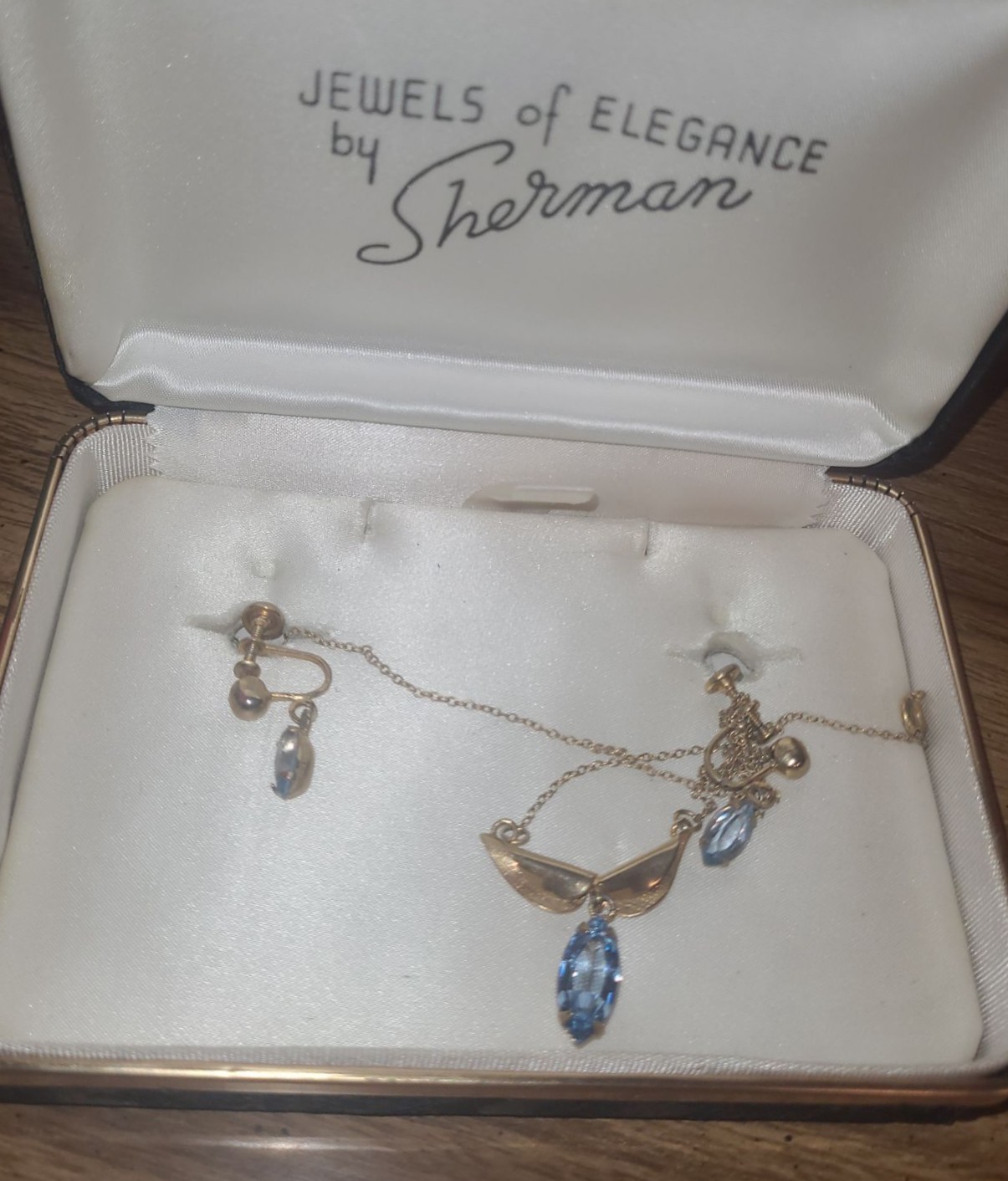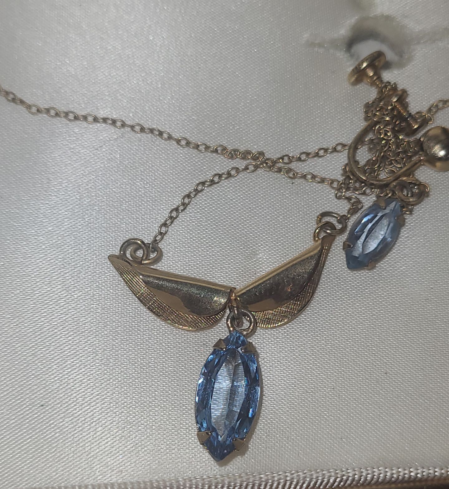 Necklace and Clip-On Earrings w/ Blue Stone, Not Stamped
