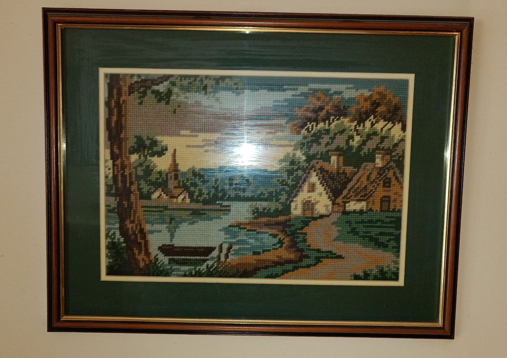 Needlepoint Art (18x14) w/ Unsigned Sunny Day Painting (14x18)