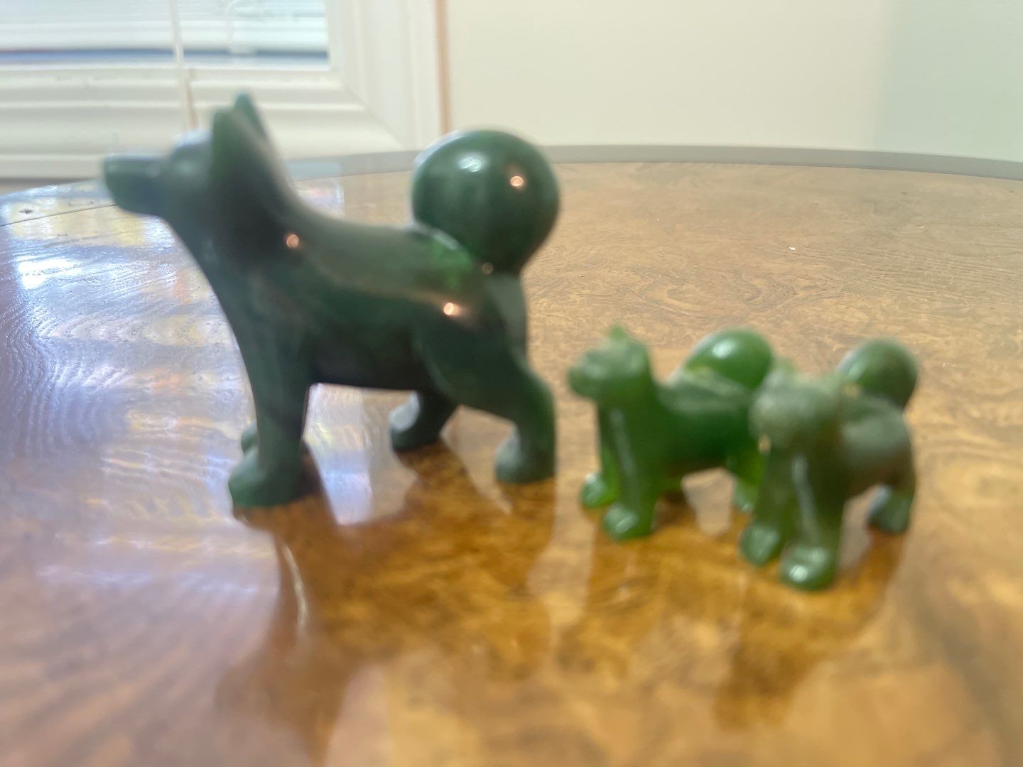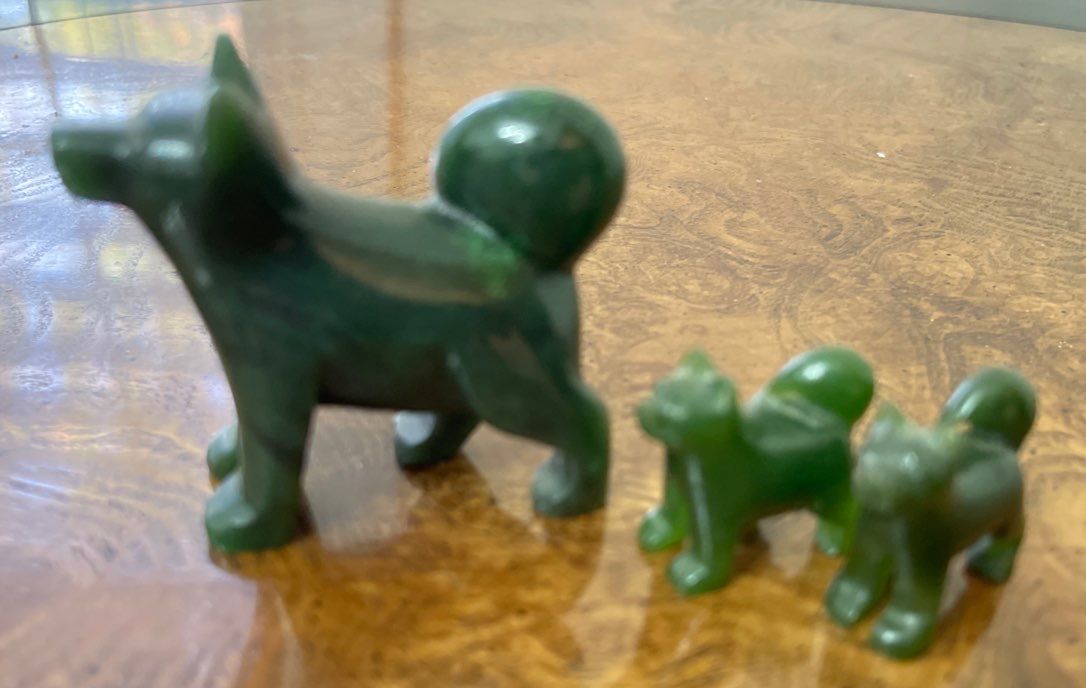 Nephrite Jade 2" Carved Husky Dog w/Babies Carving of A Momma Sled Dog