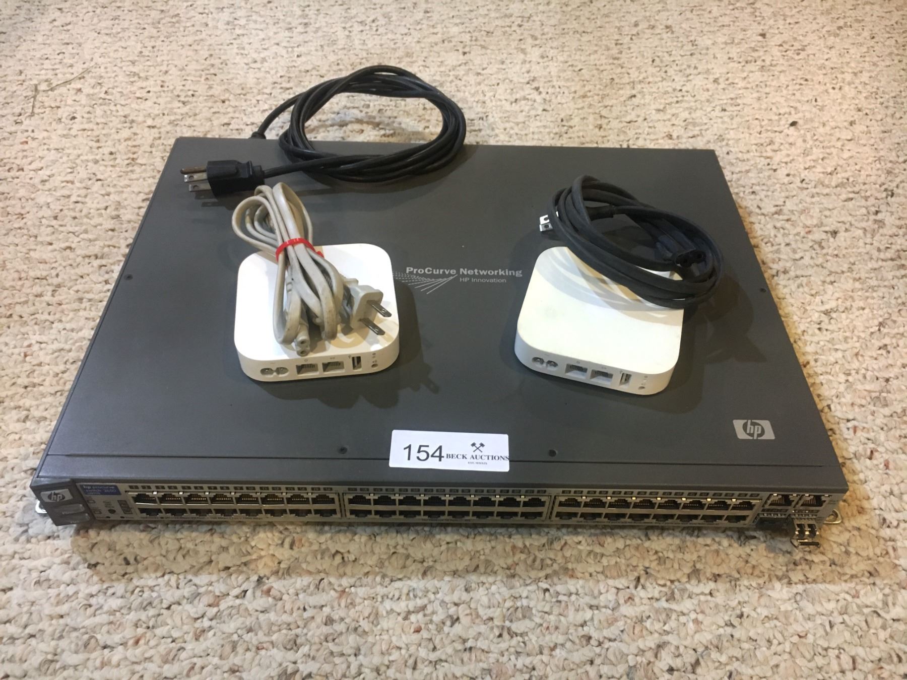 2 apple Airport Express A1392 2nd Generation 802.11n Wifi Routers With Power Cords . hp Procurve 2650 j4899b 48- Port Switch w/j4858b Multimode Fiber 850nm mini-gbic transceiver with power cord