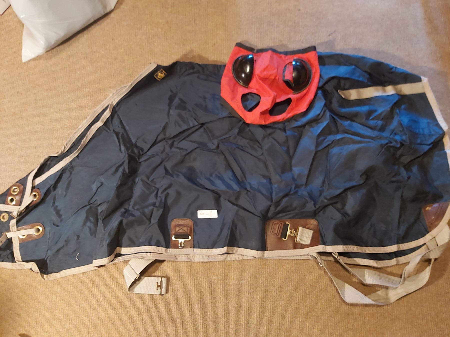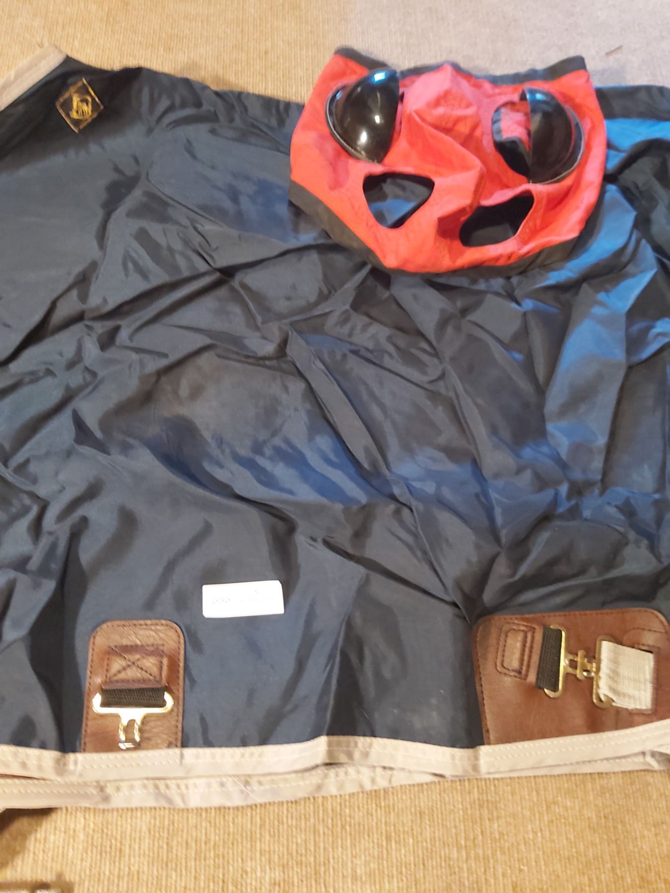 New Blue Canvas Horse Coat "Big 66" & Mask with Blinders