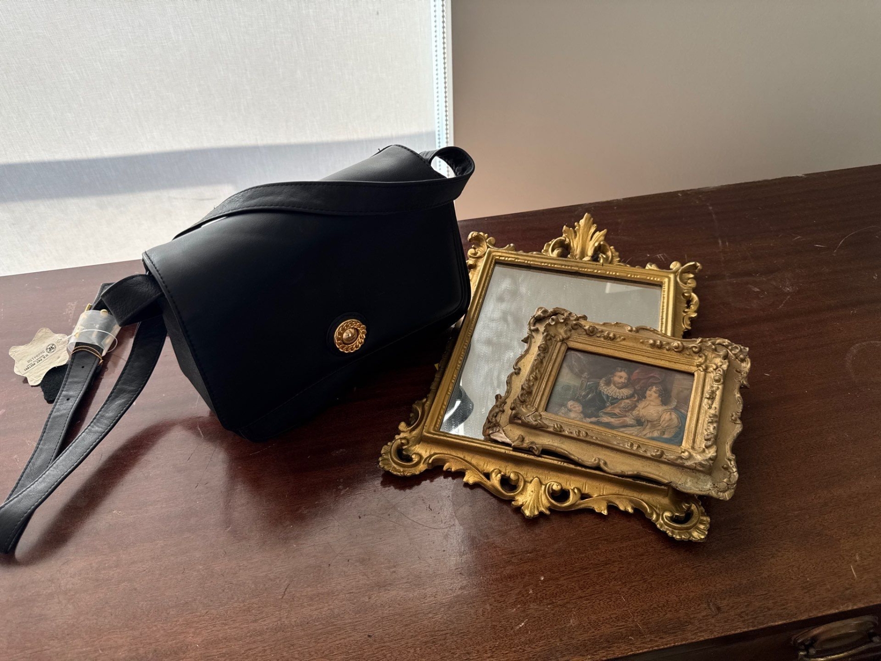 New Genuine Leather Ladies Hand Bag w/ Gold Gilt Wall Hangings 10T