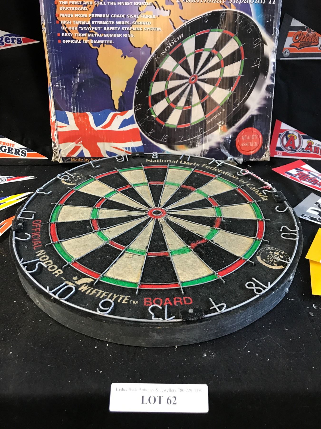 Nodor Dartboard & 20 Banners incl San Diego Padres, Milwaukee Brewers, NY Yankees, Detroit Tigers, 2