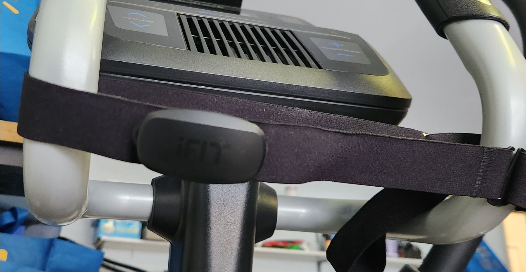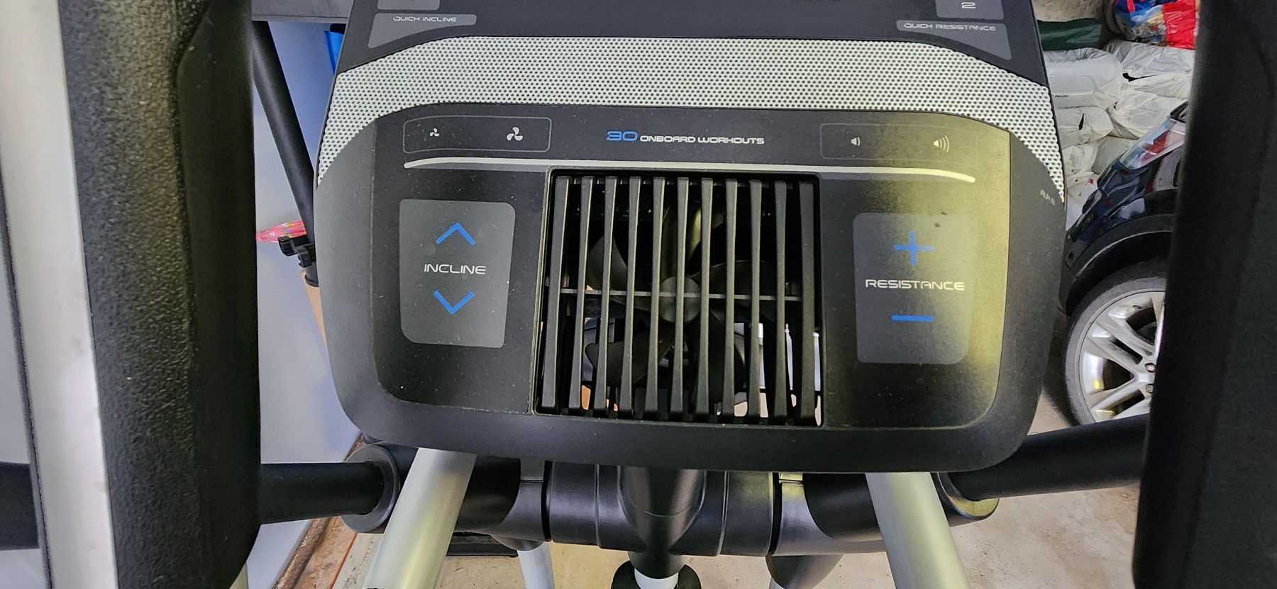 The machine includes interactive training capability with iFit compatibility, built-in workout programs, and a clear display console, along with Bluetooth audio, speakers, and a cooling fan for added comfort.