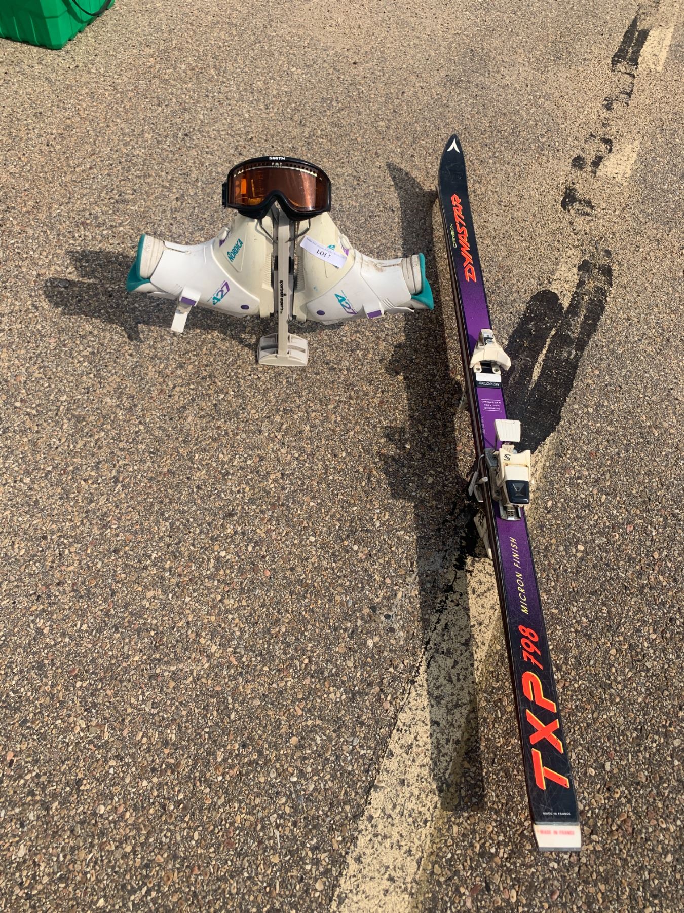 Nordica Rear Entry Line Ski Boots approx sz 7, Allsop Boot Stand & Smith Ski Goggles & Solomon TXP798 Dynastar Carbon Skis 185