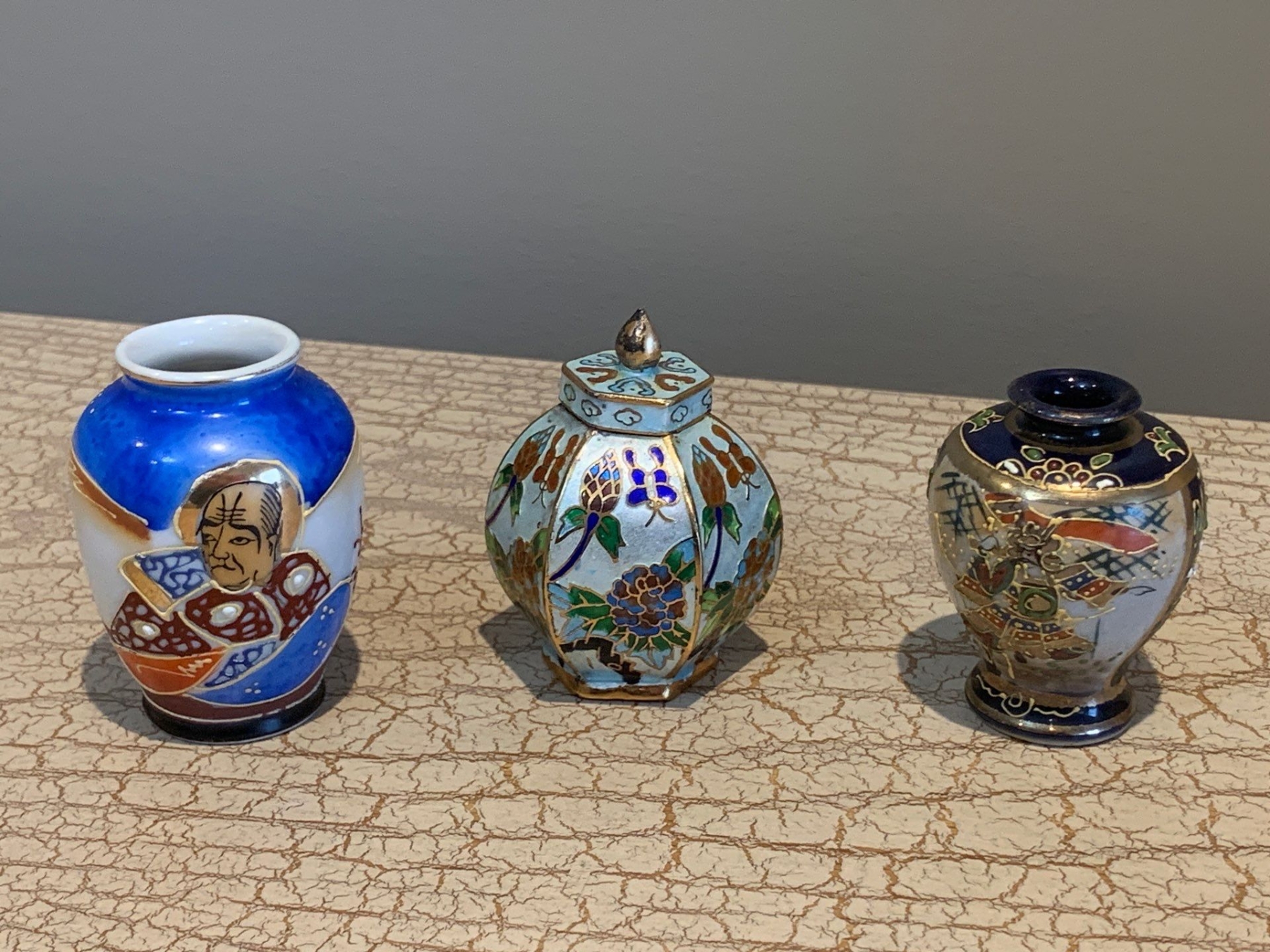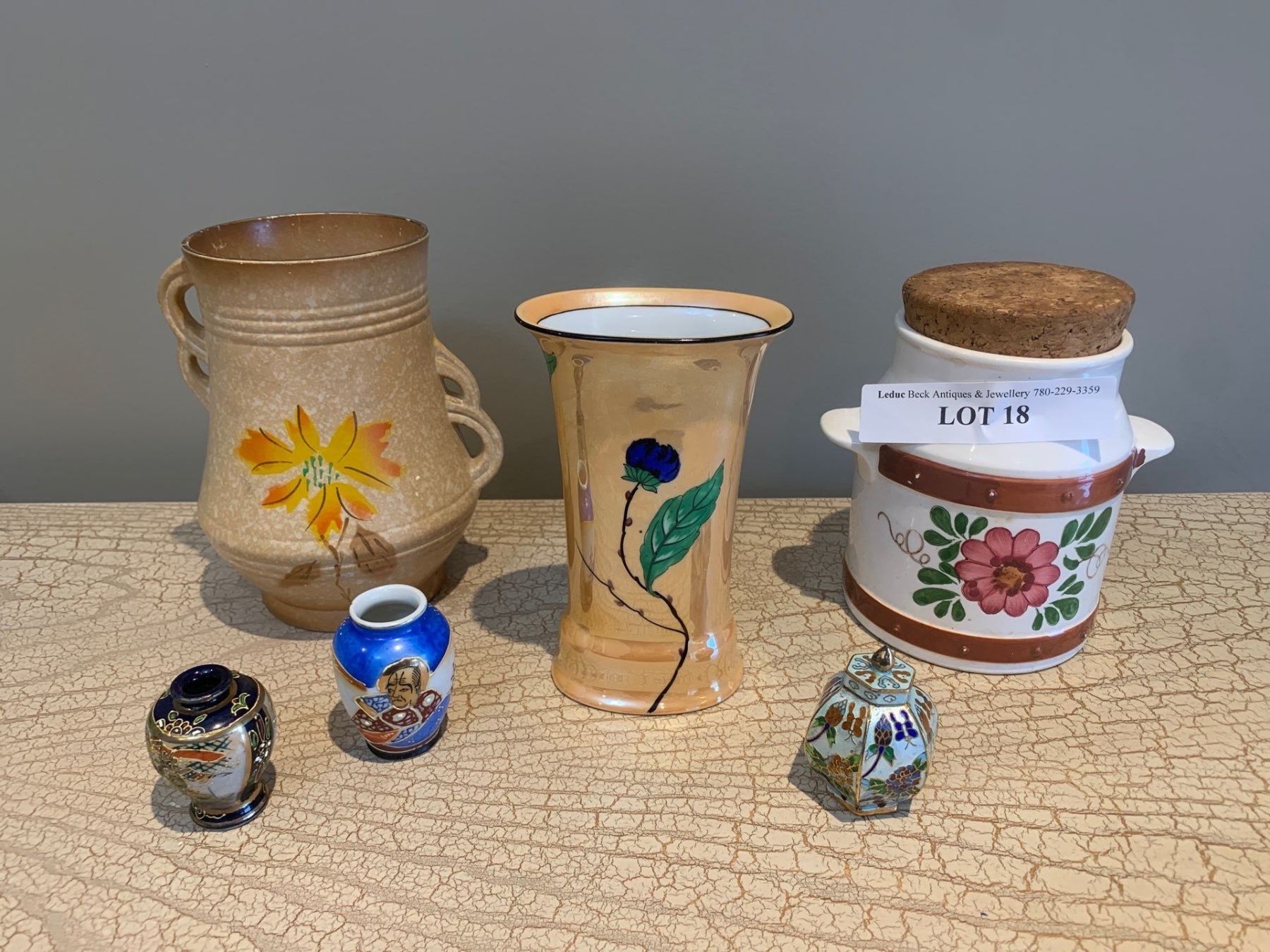 Noritake Japanese Hand Painted Vase, Floral Canister, Brown & Yellow English Vase, 3 Mini Urns