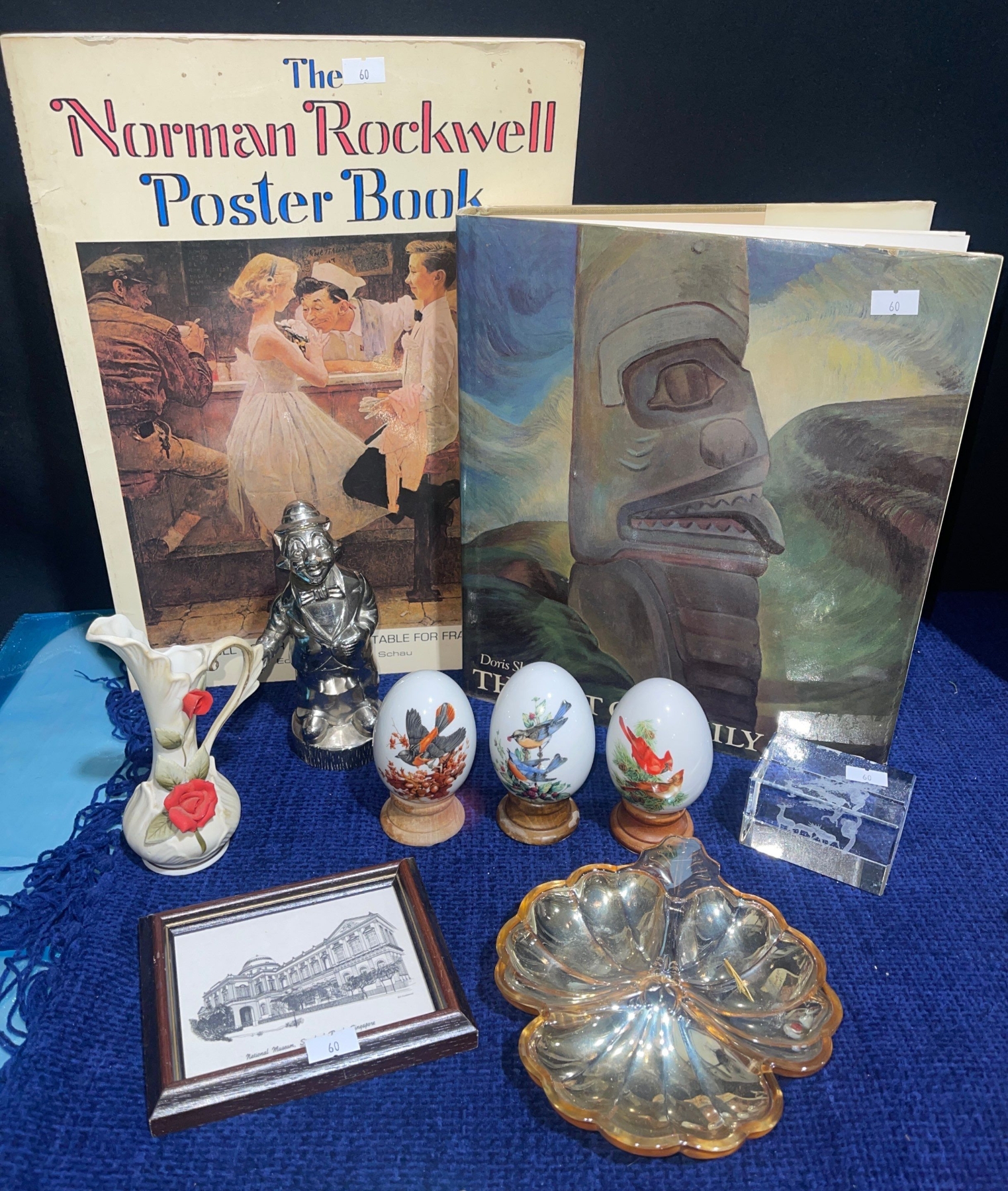 Norman Rockwell Poster Book Decorative Eggs Blown Glass Bowl Pretty Vase & More