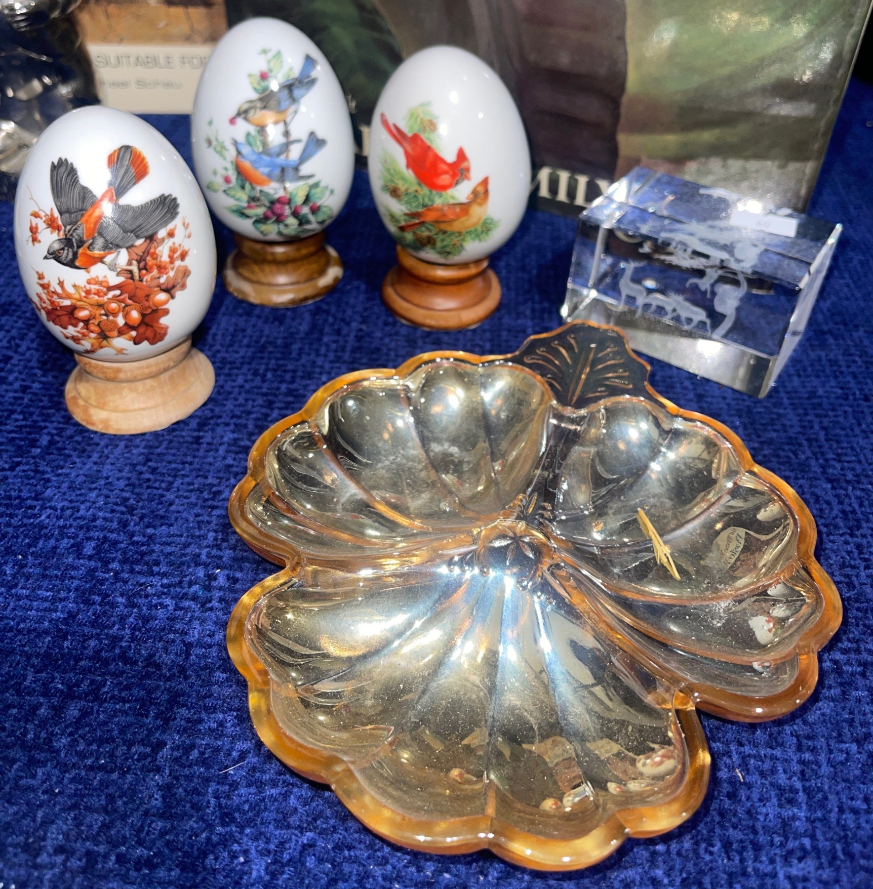 Norman Rockwell Poster Book Decorative Eggs  Blown Glass Bowl  Pretty Vase & More