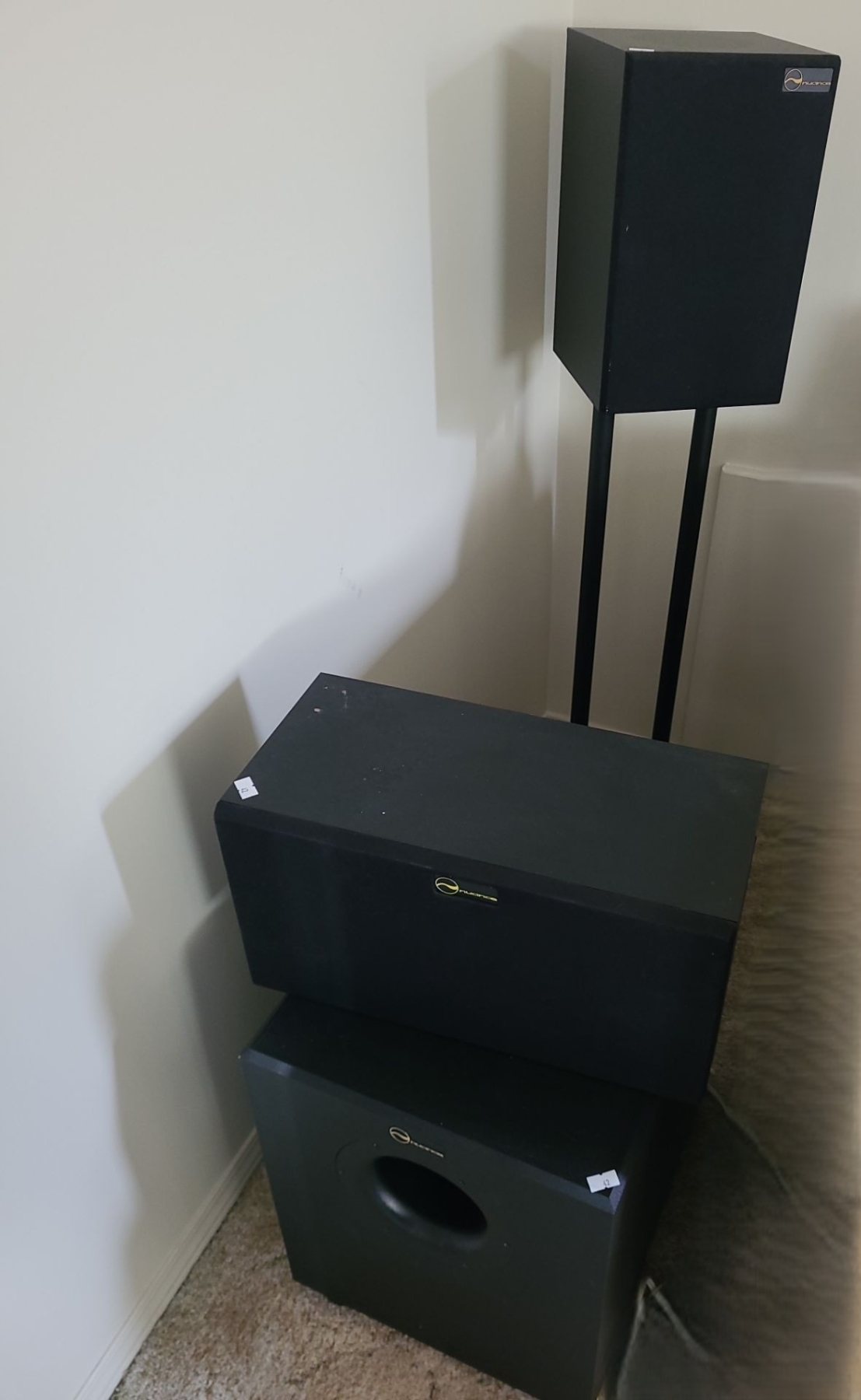 Nuance Speakers- 2 Stand: 8 W, 8 D, 42 T, Sub 17 W, 12 D, 17 T and Centre 15 W, 7 D, 8 T