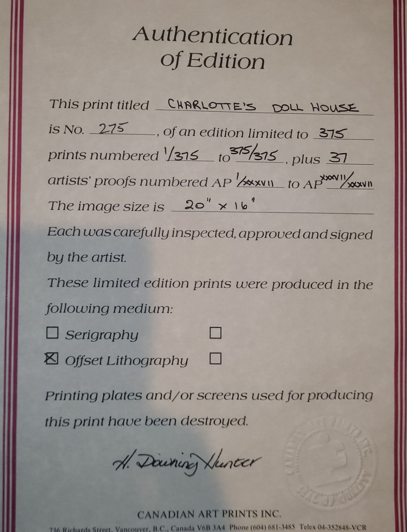Shipping Charges will be calculated once the Auction has closed and will be added to the invoice once pick-ups are completed. We ship through Canada Post, which means we only ship within the parameters of their dimensions & weight. Anything won in our auctions above and beyond that will be forfeited.