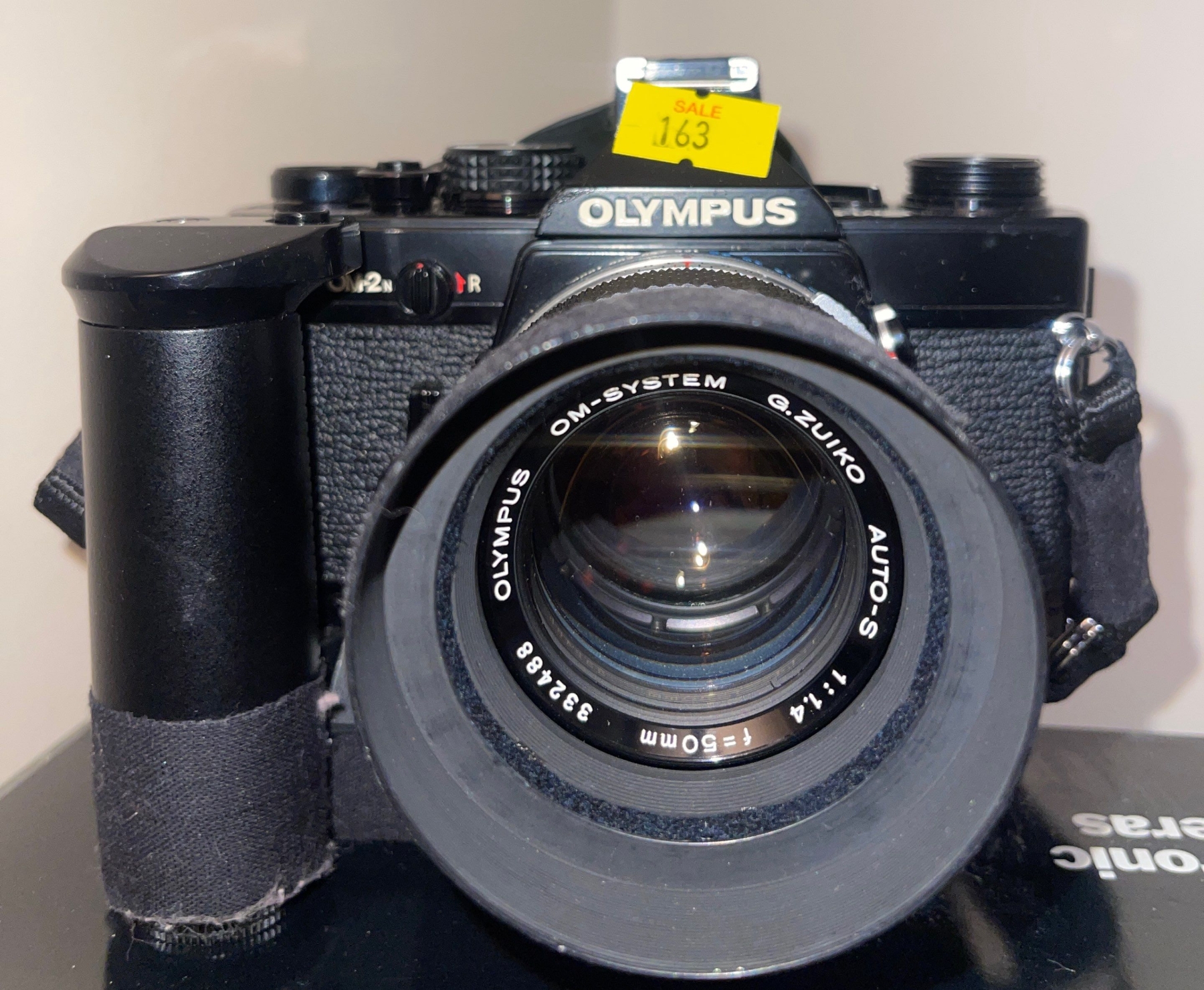 OLYMPUS OM-2 Camera w/ OLYMPUS 332486 1:1.4 Lens & Metz Mecablitz Telcomputer Quadro Light SC300