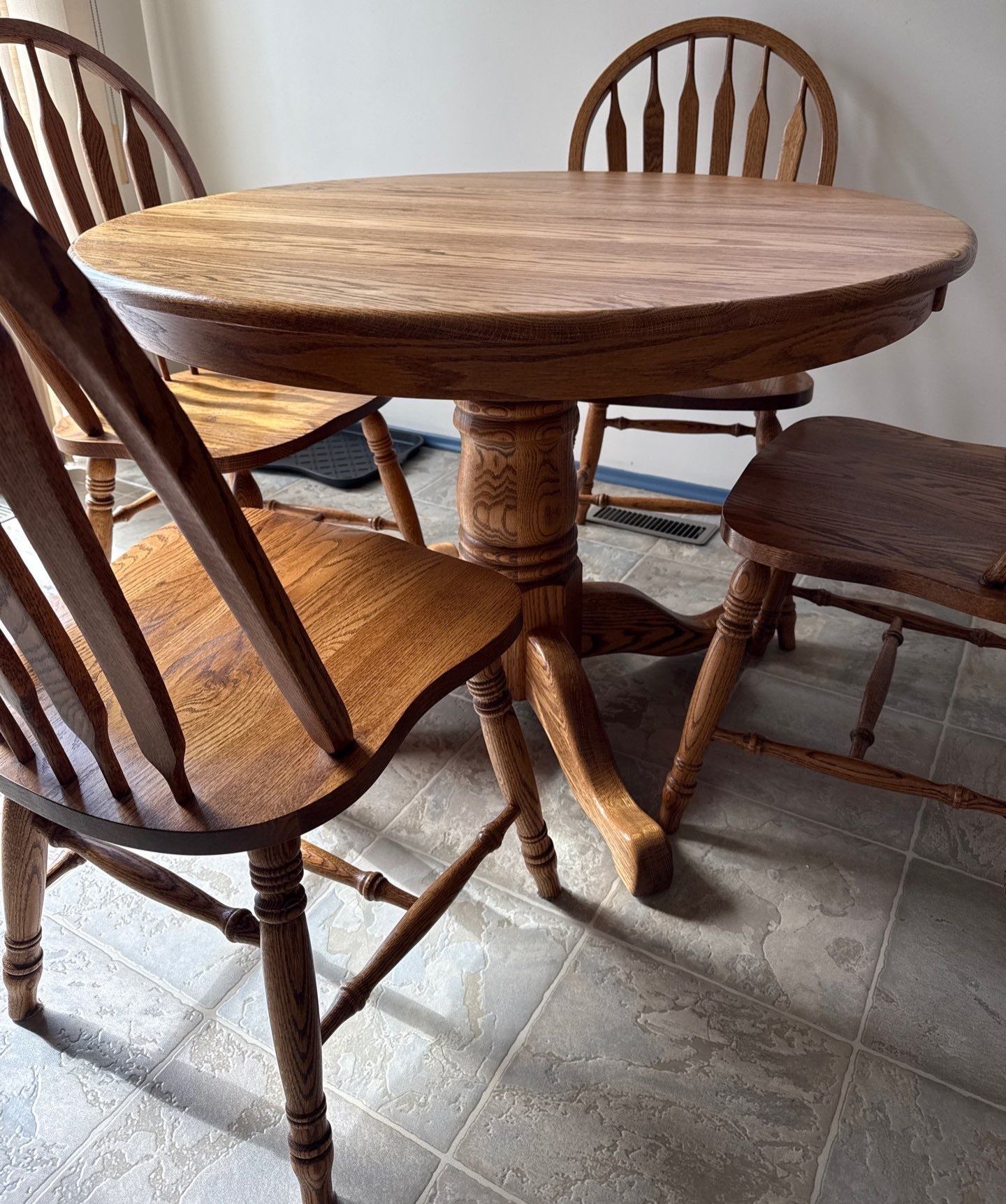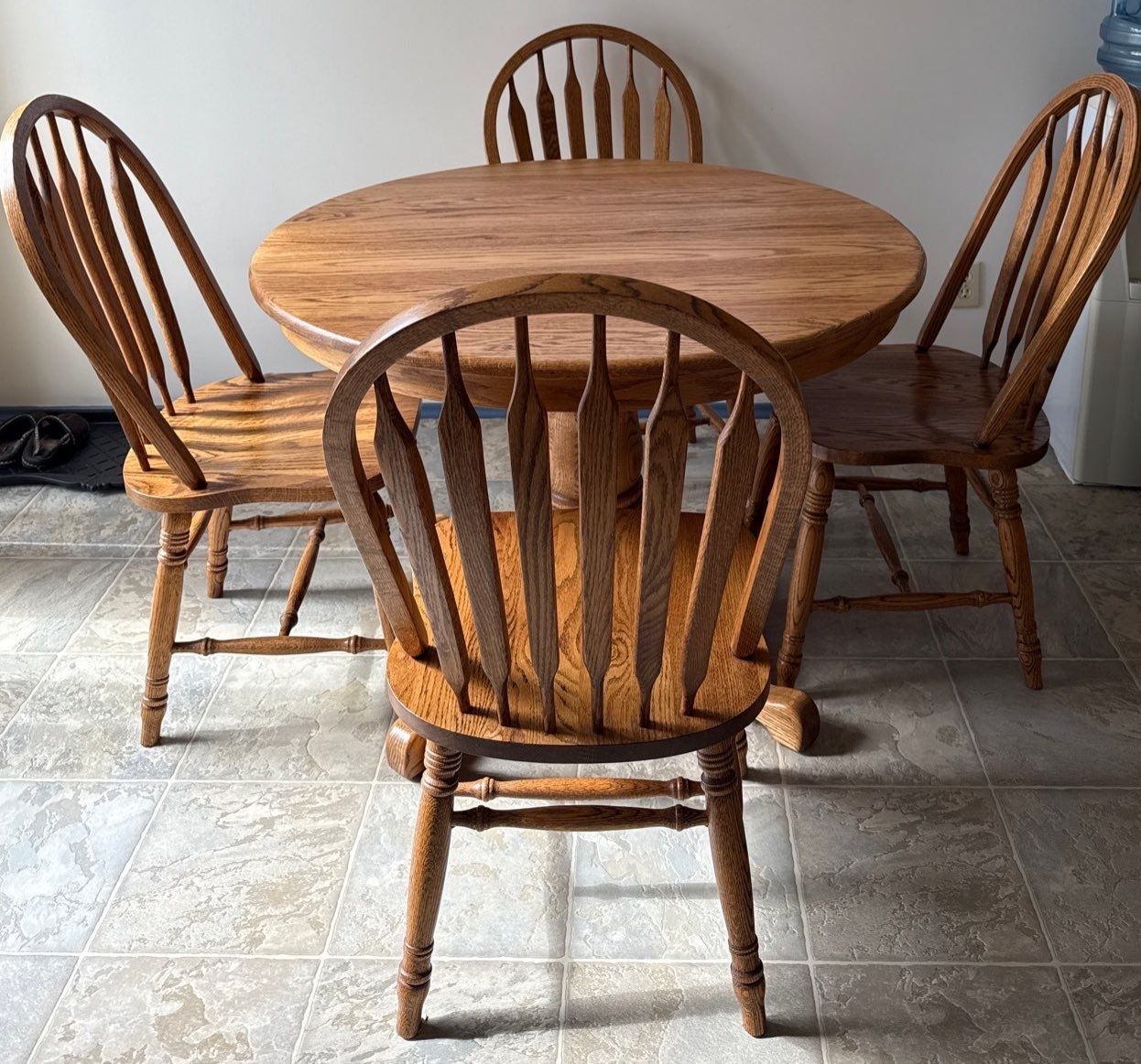Oak Dining Table w/ 4 Chairs & 2 Leafs - 42W, 29T Not Extended
