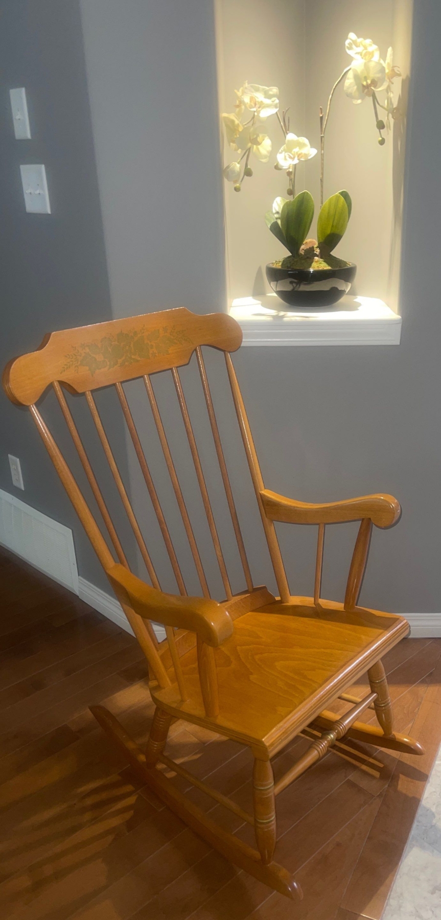 Oak Laminated Beech Rocking Chair w/ Faux House Plant Orchid 24x20x44