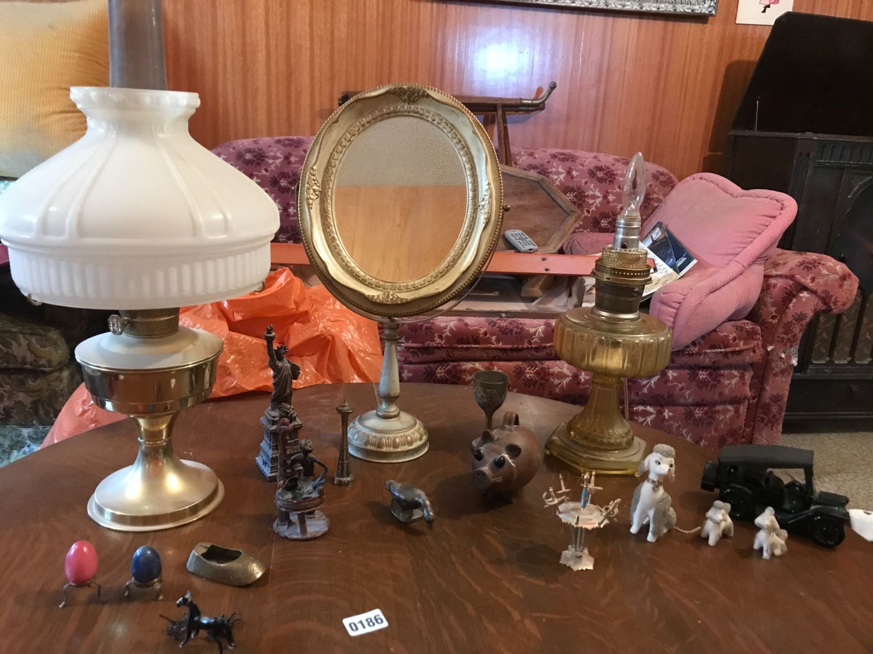 Oil Lanterns, Brass Ornaments, Ornate Swivel Mirror/Stand & Home Decor