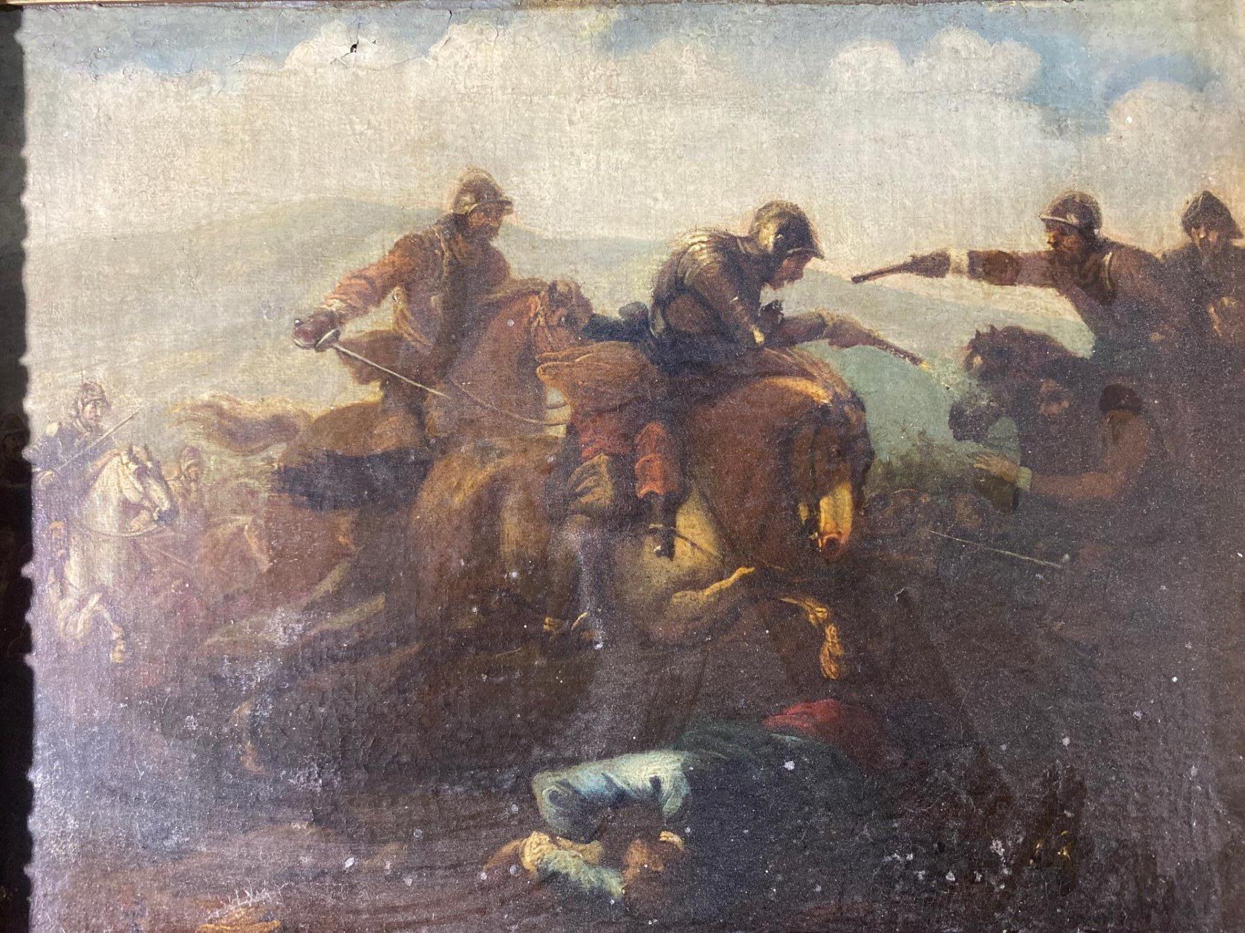 Oil on Canvas Painting of a 19th Century Battlefield (14.5  x 11   Inches Before Frame)
