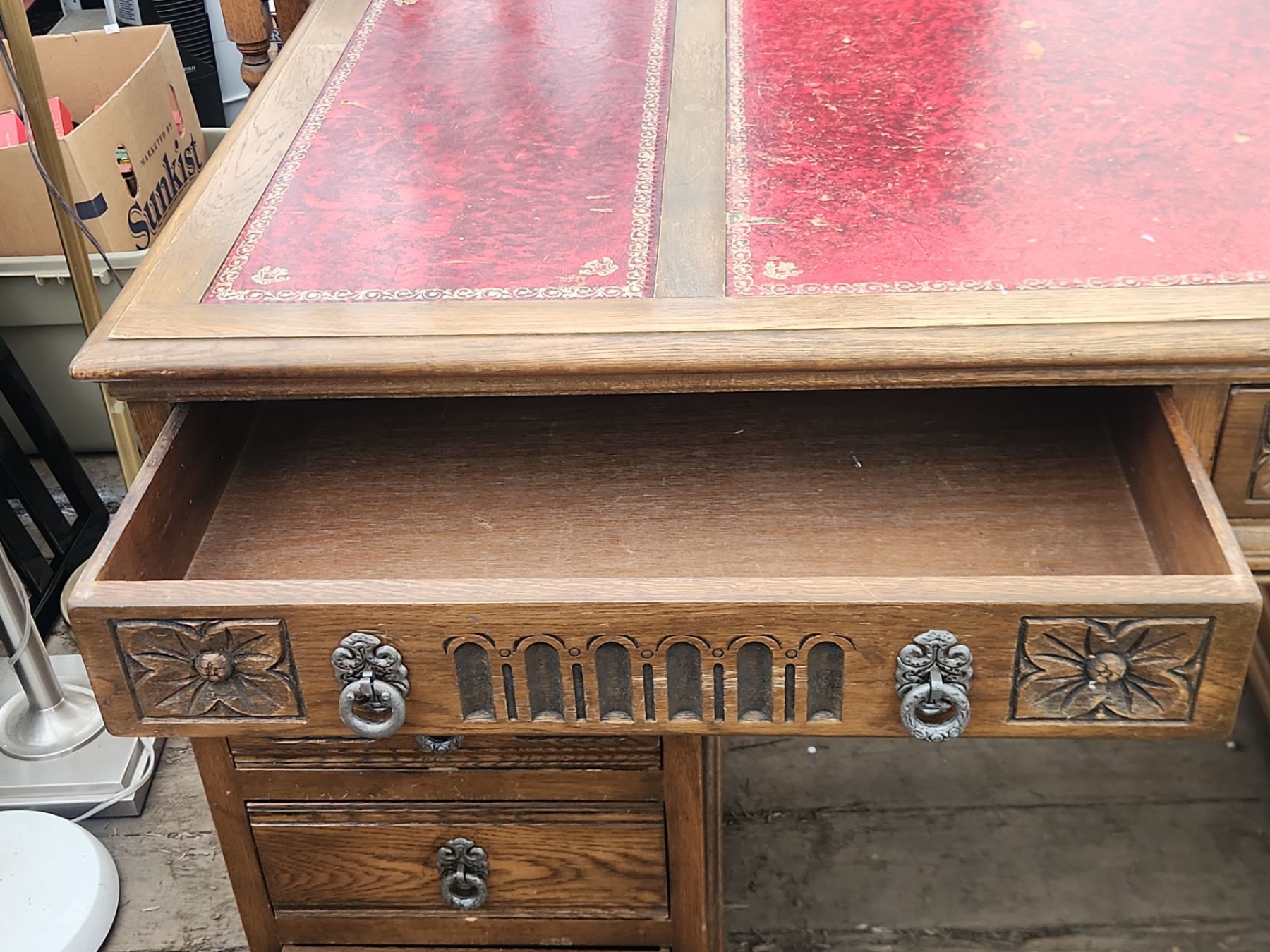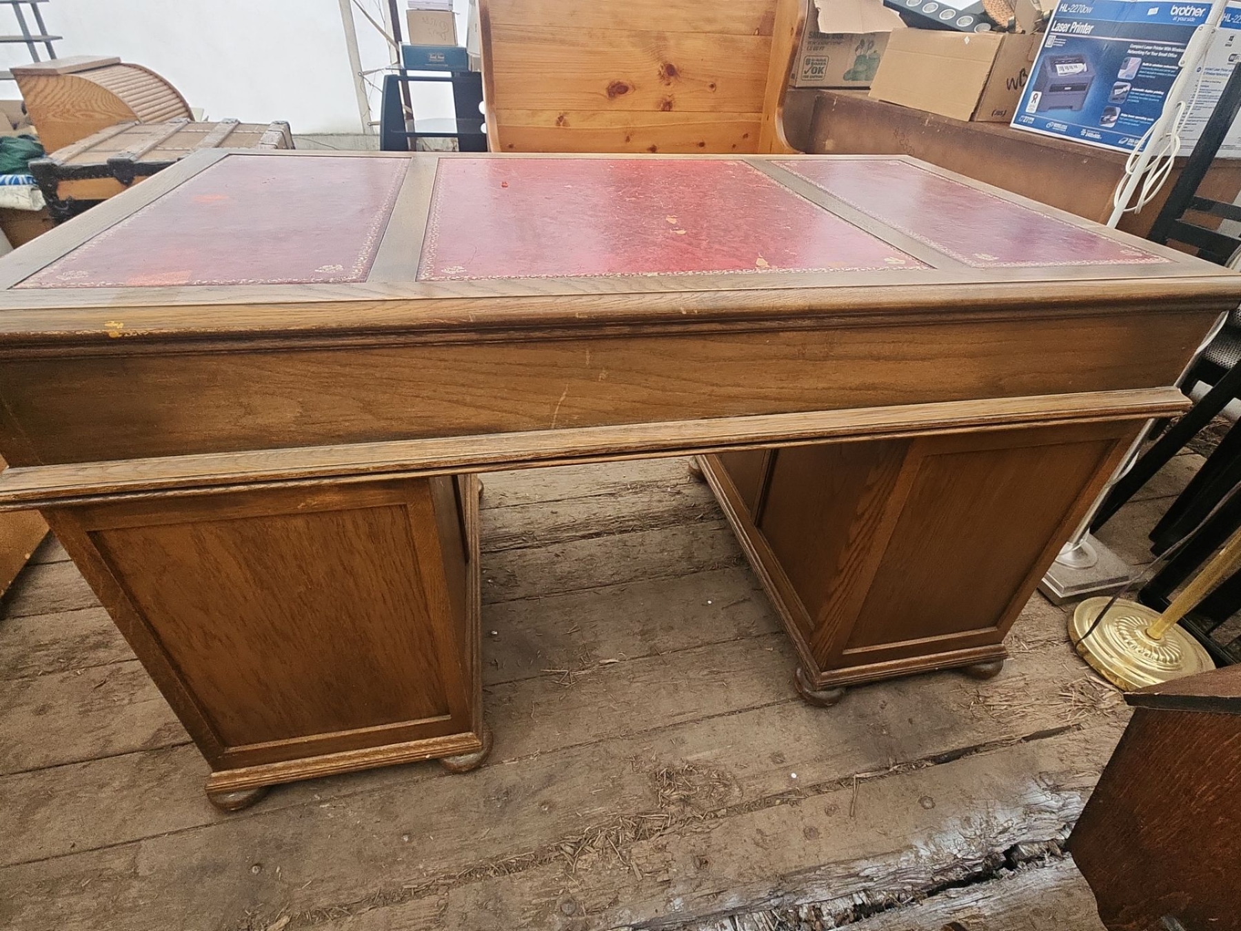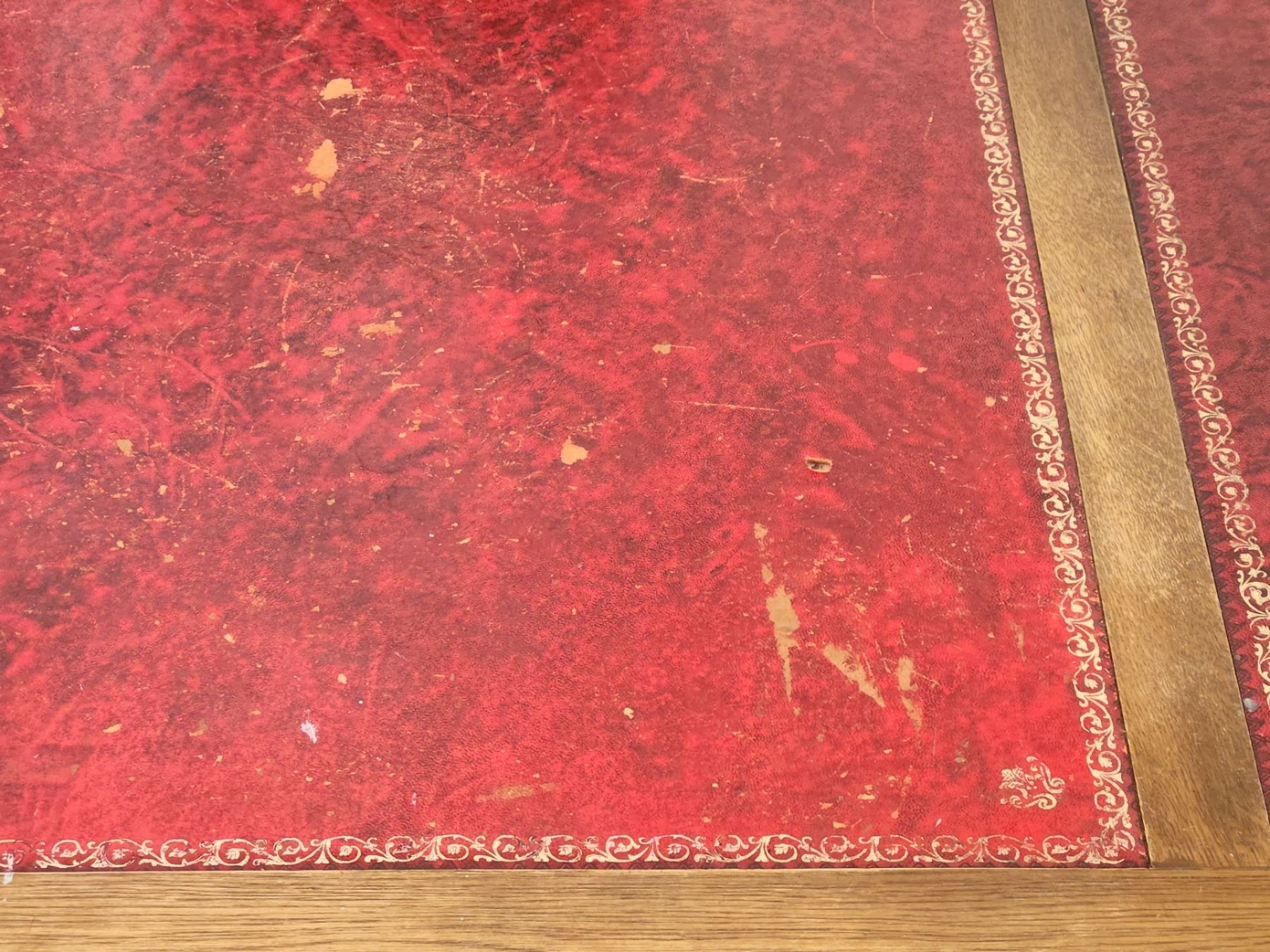 This desk features a striking red and gold top that adds a rich, elegant touch—perfect for both functional use and decorative display.