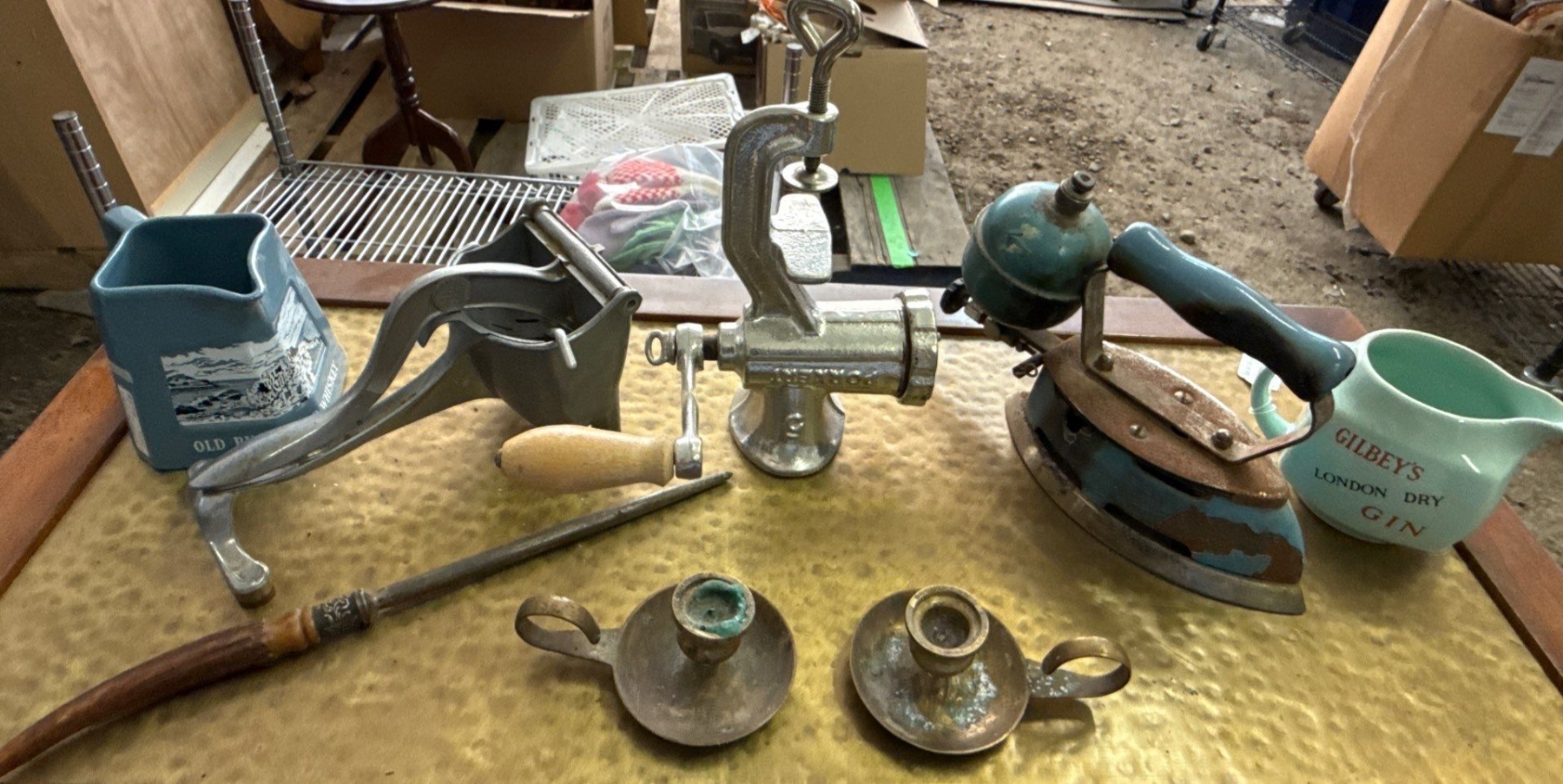 Old Collectibles From Gramma's Attic-Pork Grinder, Iron, Glass Jugs & More