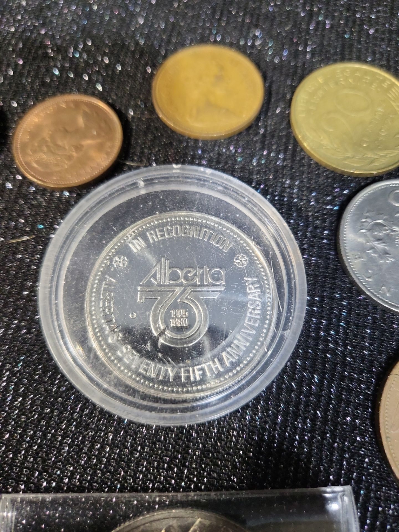 This collection of coins offers a lovely variety of commemorative coins, pennies and alberta coins.