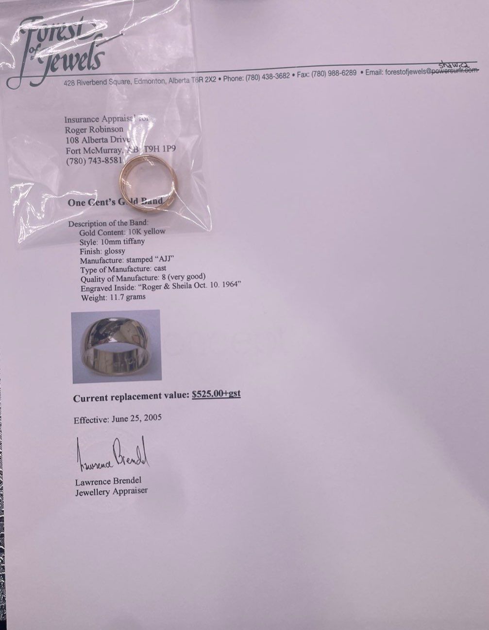 One Gent's Gold Band 10K YG; Ring Weighs 11.7g